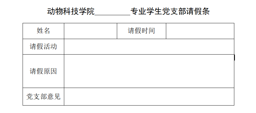 第二条 在党组织生活、学习教育活动等期间,除与课程时间冲突、生病以及其他不可抗拒因素外,党员一般不应请假;确有必要的,应事先填写请假条,并向员工党支部书记请假,说明请假的原因和时间,经同意后,方可生效,请假条在党支部内留档备查;否则,按无故缺席处理。