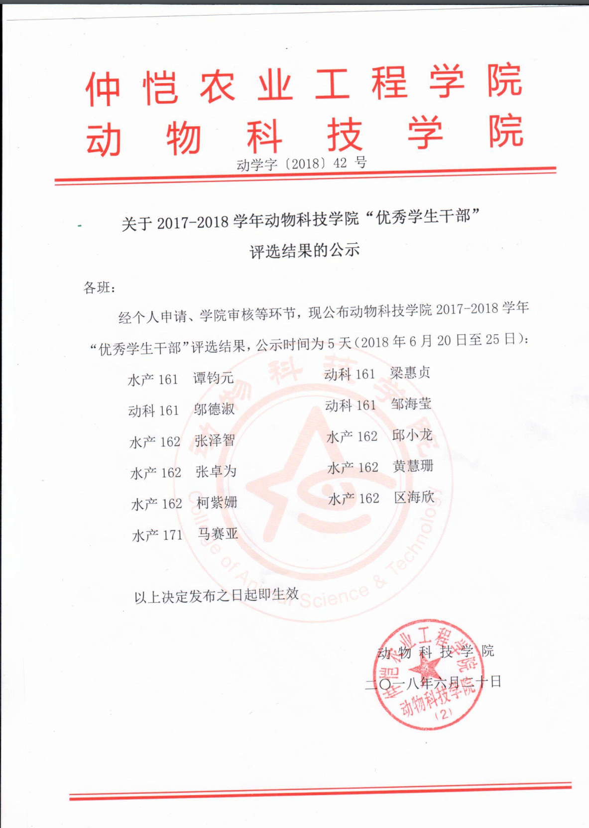 关于2017-2018学年bevictor伟德官网“优秀员工干部”评选结果的公示