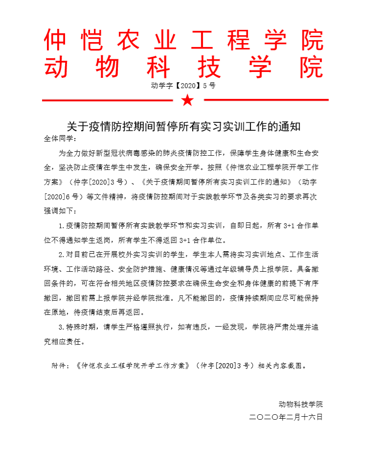 关于疫情防控期间暂停所有实习实训工作的通知