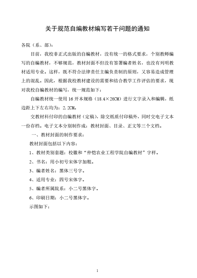 关于规范自编教材编写若干问题的通知