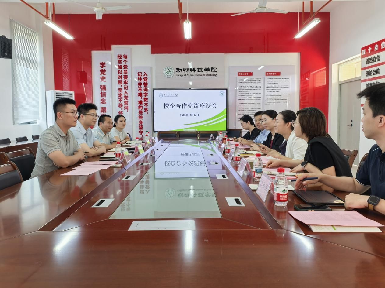 10月17日下午,温氏食品集团股份有限公司鸡业一部人力资源部副总经理伍达浩一行4人到公司洽谈合作事宜,双方在白云校区生命科学大楼开展深度交流。员工工作部部长沈洁,公司党委书记朱路平、副书记李昌辉、教师代表杨明、辅导员李博以及公司就业指导中心梁开华、张小翠等出席了交流活动。