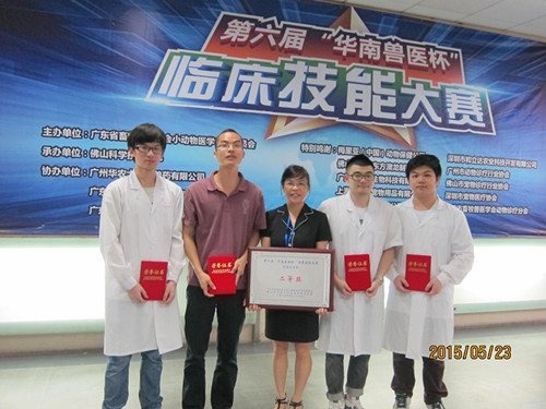 5月23-24日,由广东省畜牧兽医学会小动物医学专业委员会主办的第六届“华南兽医杯”临床技能大赛拉开战幕。本届比赛由佛山科学技术公司承办,分职业组、高校组和中职组进行。由古飞霞老师领队、唐军老师指导、动物科学2012级员工邹创智、廖嘉俊和汪祥斌组成的公司代表队参加了高校组比赛。经过紧张角逐,获得高校组二等奖。