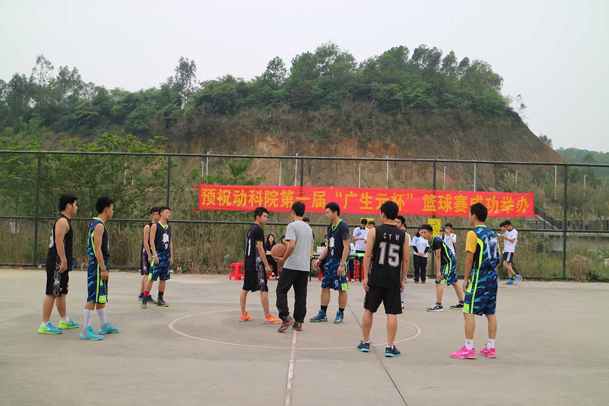 沈洁老师宣布“广生元杯”篮球赛正式开始。随着裁判一声哨响,动科152班和动科141班比赛开始,拉开了本届篮球赛的战幕。