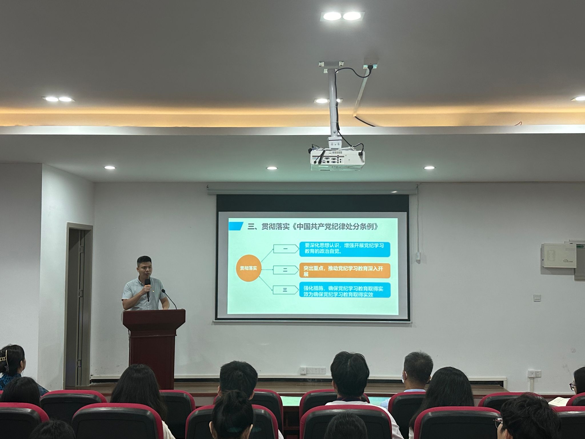 部署会上,主讲人朱路平向全体本科生党员传达公司党委党纪学习教育工作方案基本内容和要求,确保党员从思想上、认识上、行动上对党纪学习教育工作高度统一,同时要求全体党员深化思想认识,增强党员开展党纪学习教育的政治自觉,要紧密结合职责任务,进一步深化对加强党的纪律建设的重要性和忽视党纪、违反党纪问题危害性的认识,深刻把握这次党纪学习教育对公司事业高质量发展及个人成长的重要意义。