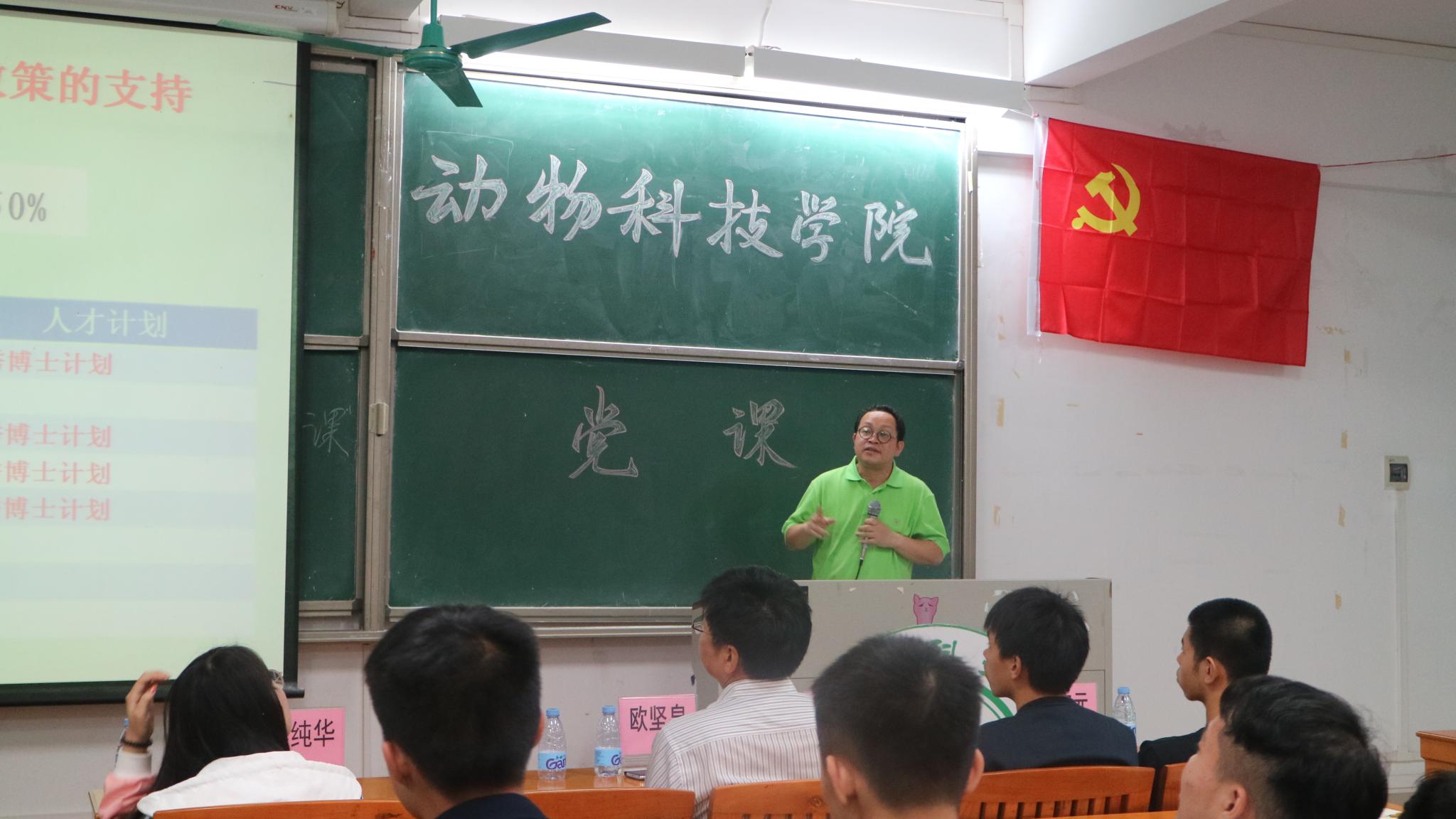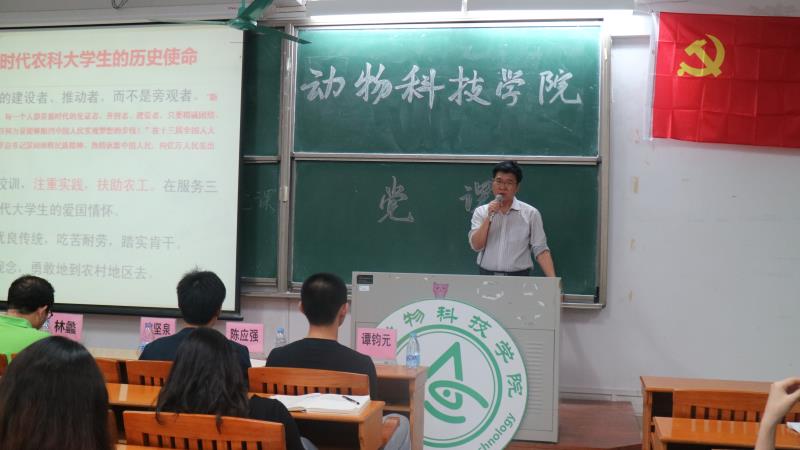 3月28号晚上,公司党总支书记欧坚泉、经理林蠡在白云校区曾宪梓楼205为动科、水产专业的员工讲授了本学期第一堂思政课。