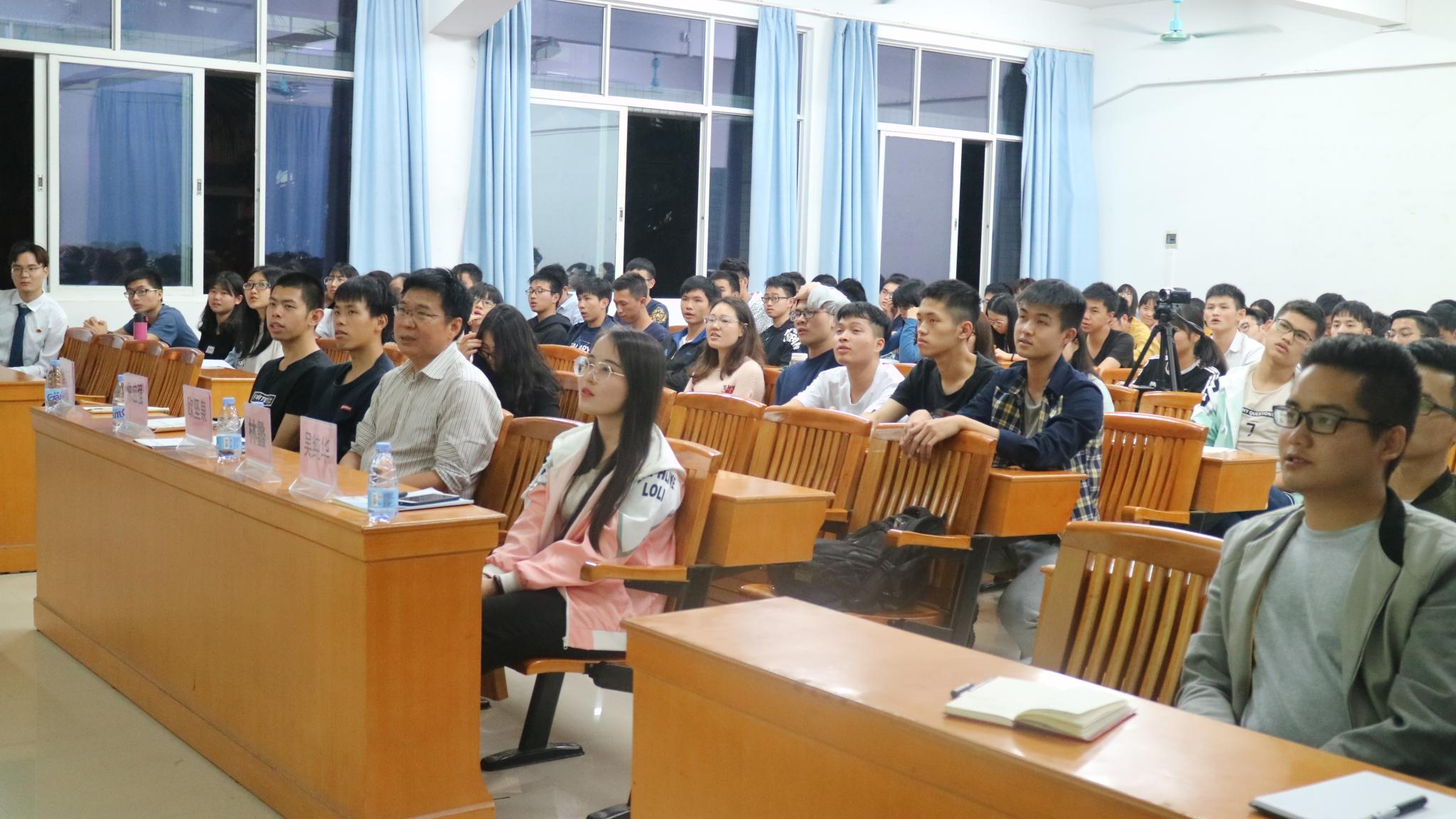 林经理以《十九大报告学习体会——美丽中国与特色仲恺》为主题,课上首先通过与员工互动的方式,让动科院的学子对我国的基本国策有更深入的了解。他从十九大报告中关于生态环境的论述谈到我国对环境治理的决心,并阐述了我国环境问题及现状。林经理还介绍了公司在环境领域的优秀团队,展望公司和公司的未来发展,对员工提出了殷切希望。
