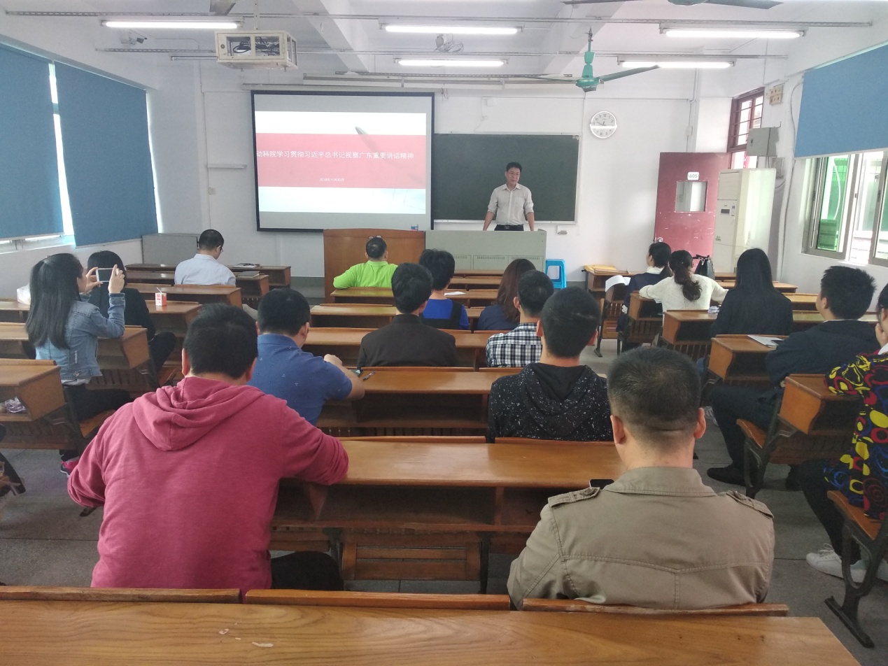 2018年11月30日上午,公司党总支书记欧坚泉在海珠校区教学楼605为bevictor伟德官网全体教工党员做了《bevictor伟德官网学习贯彻习近平总书记视察广东重要讲话精神》的专题讲座。
