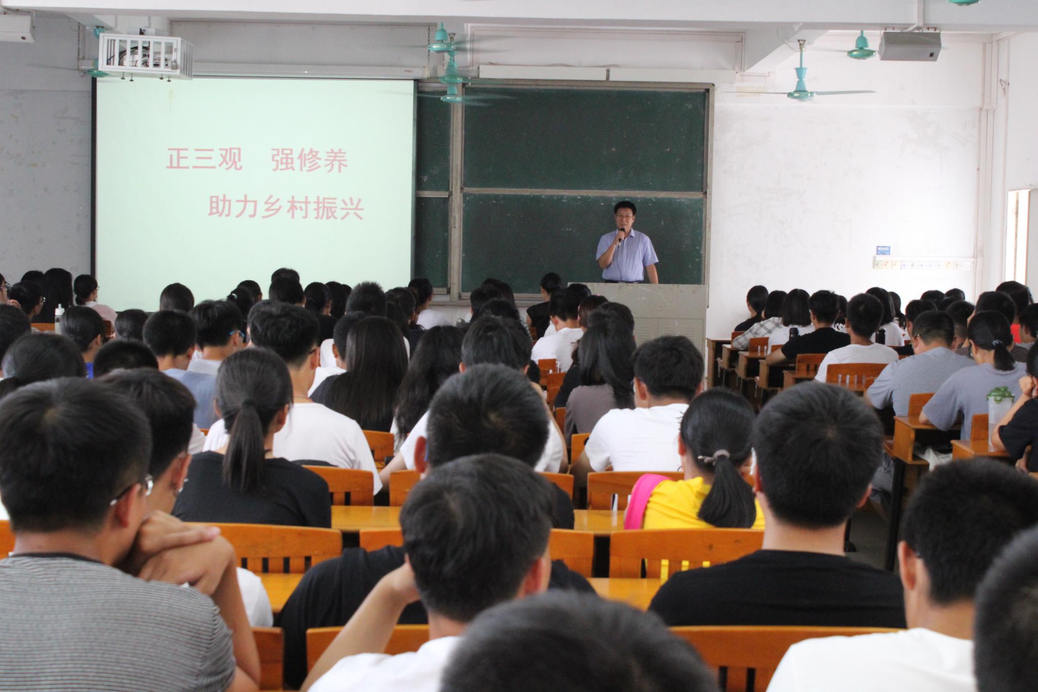 欧书记以 “正三观,强修养,助力乡村振兴”为主题,带领同学们一起学习了习近平总书记在纪念马克思诞辰200周年大会上的讲话精神,引导同学们认真学习马克思主义,牢固树立辨证唯物主义世界观,自觉抵制唯心主义世界观,指出三观修养是最重要的人生修养,决定了一个人的政治取向和人生价值追求。要求同学们树立正确三观,把个人事业与国家乡村振兴大事业结合起来,秉承校训,服务三农,助力乡村振兴。