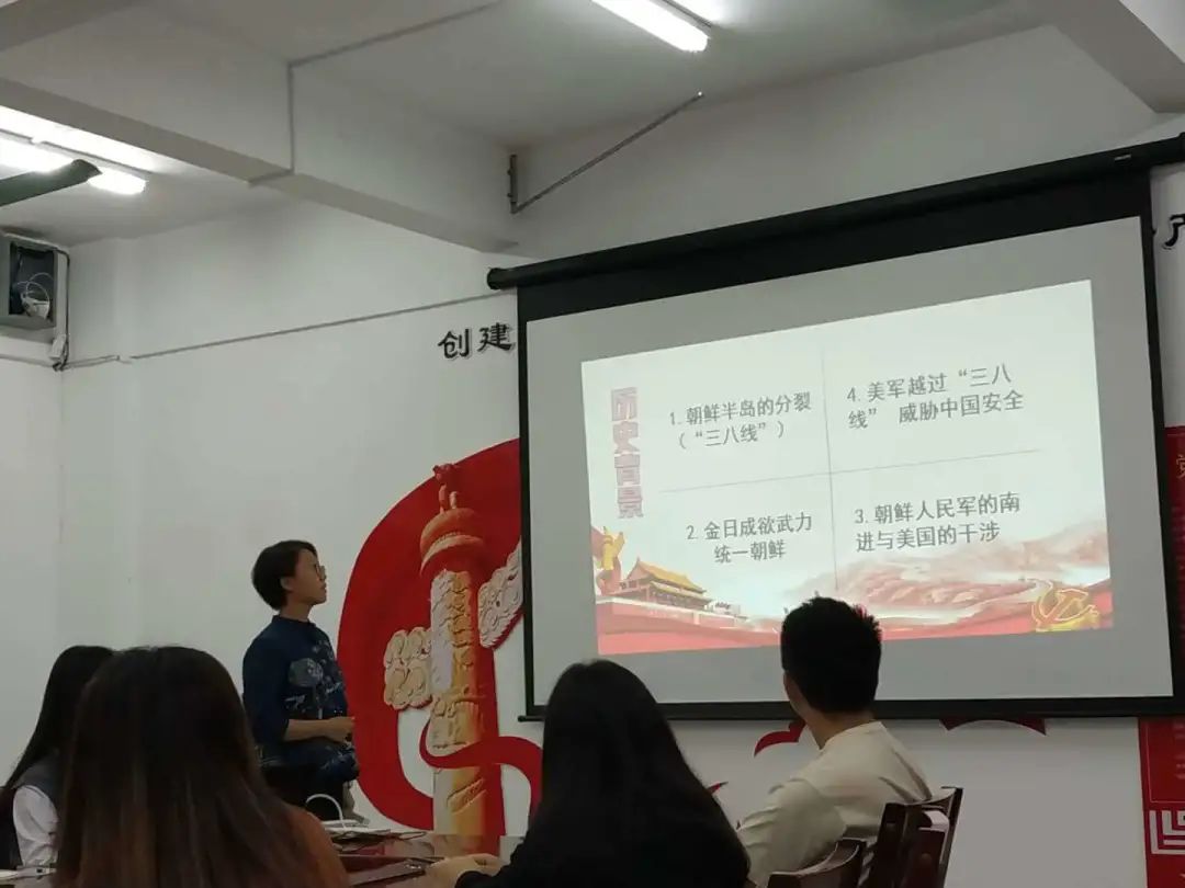会上,颜旭言同志带领大家回顾了抗美援朝的战火历史,重点讲述了被称为“国魂之战”的上甘岭战役,以及在抗美援朝中涌现出来的英雄烈士。