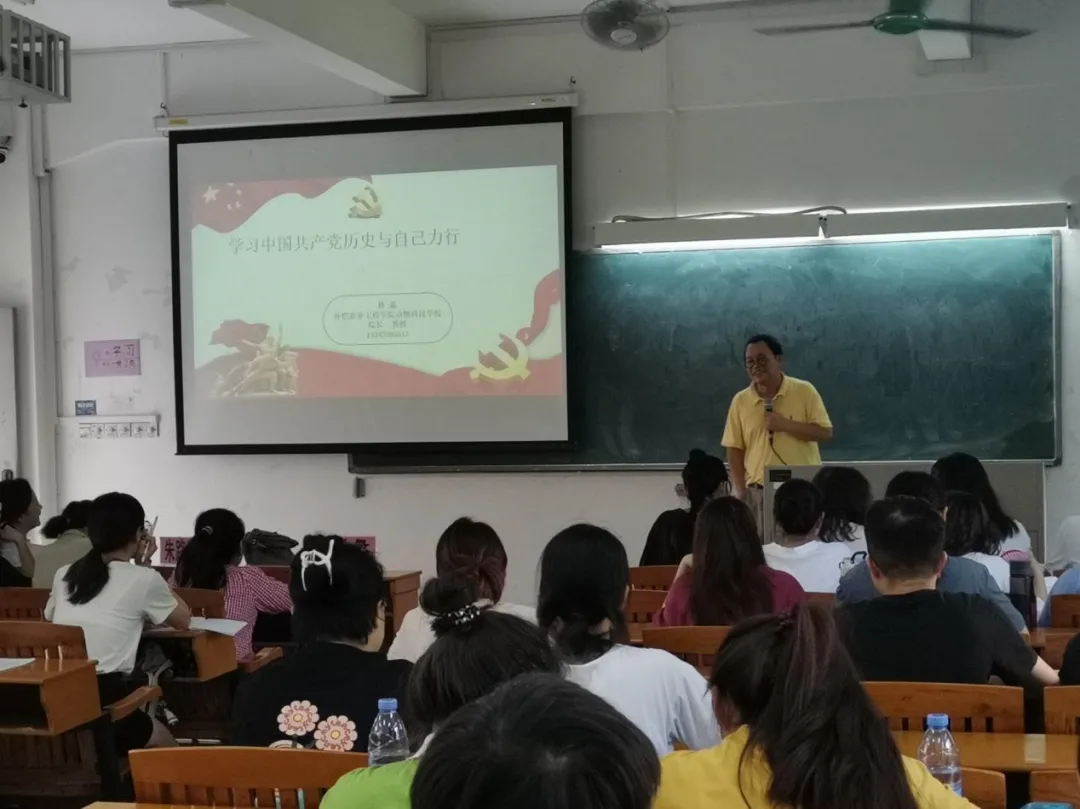 林蠡指出,从“内外交困”到“国泰民安”,百年党史传载了中国共产党人的赤胆忠心、精忠报国。当代老员工生逢盛世,应该怀揣一颗感恩的心,为中华民族的伟大复兴努力奋斗,为社会主义建设添砖加瓦。党课上他巧妙引入歌曲《倩女幽魂》,并用歌词中“何去何从,去觅我心中方向”引发同学们对人生规划的思考。他以身为范鼓励同学们做好每一步人生选择,在大学期间保持考研进取心,把个人的人生规划与社会重大需求结合在一起,爱国爱校爱自己爱专业,感恩祖国对自己的培养,用扎实的专业知识和实际行动报效伟大的祖国。