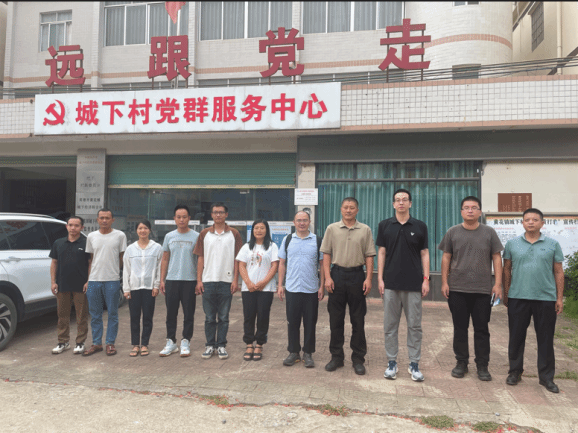 最后,特派员团队一行人前往城下村,该村位于黄花镇西面,以广阔的耕地、肥沃的土壤和充足的水源而闻名,是重要的粮食主产区。在与村干部的深入交流中,特派员团队针对城下村特色农业产业的发展状况和存在的问题,提出了包括病虫害防控培训和“稻渔养殖”模式推广在内的多项建议。