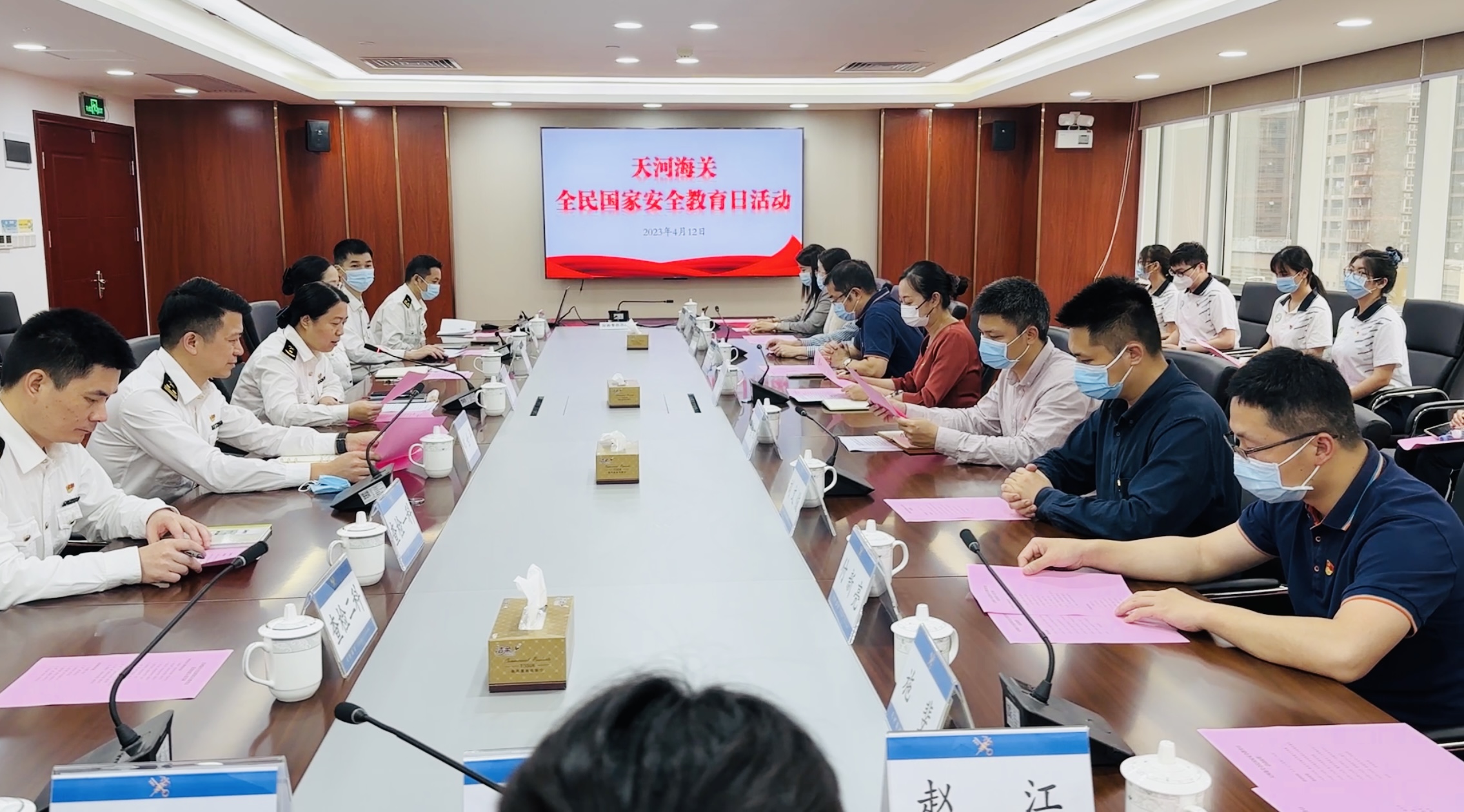 为学习贯彻党的二十大精神,充分发挥基层党组织的核心引领作用,激发“三会一课”新活力,推动党建工作和业务工作深度融合,4月12日,公司党委书记朱路平、党委副书记李昌辉、副经理黄运茂、刘文俊和党支部书记、党员代表一行前往天河海关开展党建结对共建暨全民国家安全教育日交流活动。天河海关关长王丽霞、副关长李娟、郑世平以及各科室负责人出席活动。
