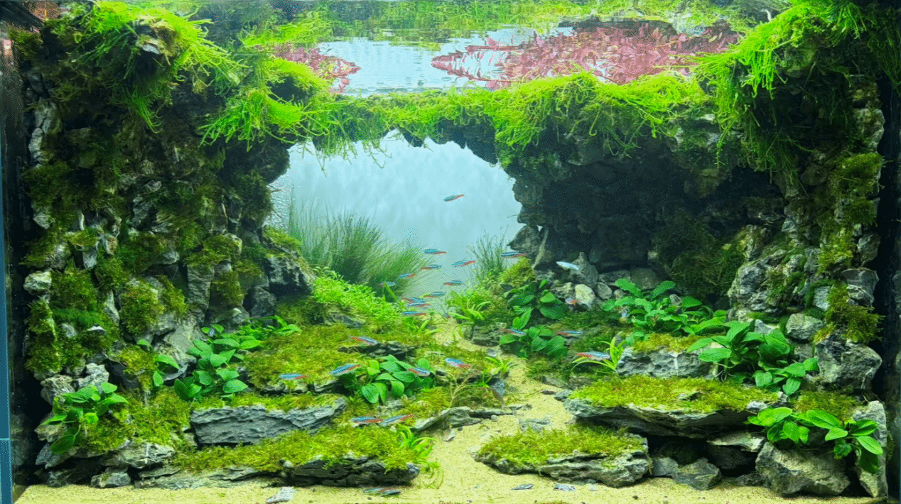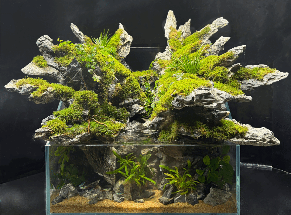 中缸组 水医241施佳航 钟梓恒《苔木幽镜》指导老师:刘春 莫金凤