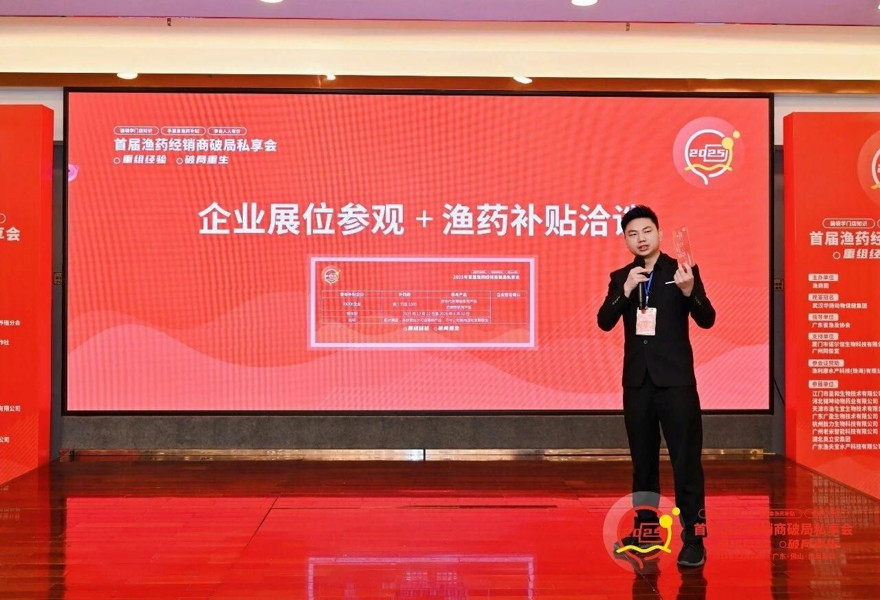 2025年12月22日至23日,首届渔药经销商破局私享会在广东佛山成功举行。本次会议以“重组经验・破局重生”为主题,是2025年水产动保行业首场聚焦渔药与动保经销商发展的重要交流活动。bevictor伟德官网水产养殖系教授梁日深作为特邀嘉宾,带领研究生团队一同参会。