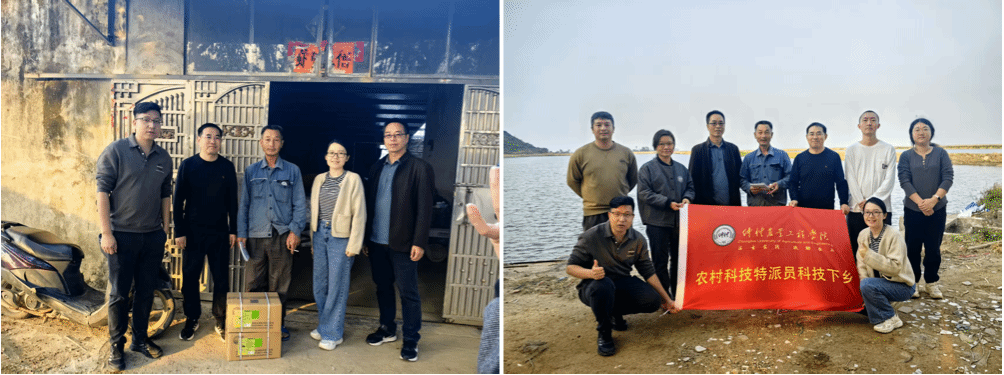 随后,团队深入护岭村青蟹养殖户的塘头,与养殖户进行面对面交流,针对青蟹养殖中常见的水质管理、常见病害识别与处理等技术难题,三位老师进行了详细解答与现场示范。团队还向养殖户赠送了自行编制的《水产养殖病害防治手册》及一批安全高效的动保产品,将实用技术送到生产一线,切实帮助养殖户提升冬季养殖管理水平和风险应对能力。