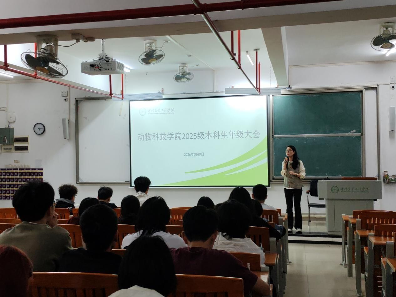 新学期伊始,杨崧号召全体同学以主人翁的姿态,从课堂表现、宿舍文明、行为举止等点滴做起,自觉营造优良学风,展现动科学子昂扬向上、严谨求实的精神风貌,共同塑造积极向上的校园氛围。会议最后,杨崧为同学们发放了精心准备的明信片,寄予新学期的美好祝福。