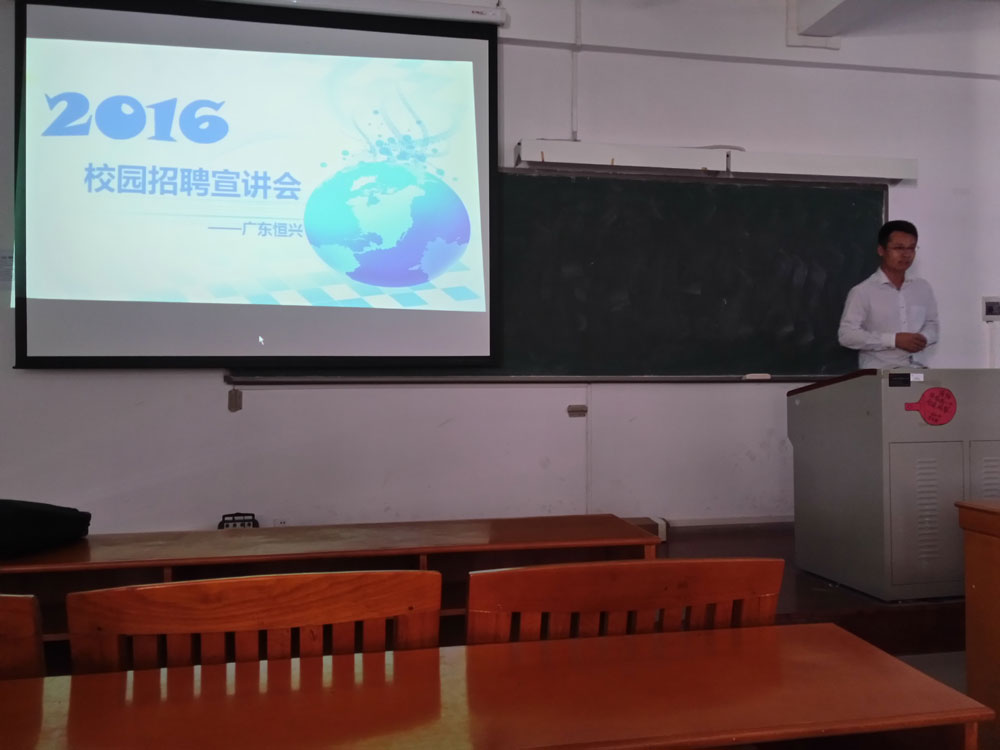 会上福志峰经理通过播放公司简介视频,简述恒兴公司的企业概况,结合ppt向同学们展开对恒兴公司的详细介绍。在员工提问环节中,同学们积极提问,福经理及其团队热心为同学解答。