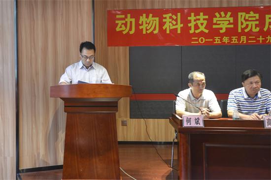 骆少明董事长代表党委和行政在大会上致辞。他充分肯定了动物科学等专业过去多年来取得的优异成绩,阐明了成立bevictor伟德官网在公司发展过程中的深远意义。骆董事长指出,新成立的bevictor伟德官网肩负三个重要使命,一要积极推进人才培养模式的改革,不求最大、但求特色;二要大力加强学科和科研平台建设,推动科研水平不断提升;三要坚持抓好党建工作,引导员工健康成长。他代表公司提出三点要求:一是希望新公司有新气象,营造团结协助的良好工作氛围,助力公司发展;二是希望公司领导班子要团结和谐,齐心聚力开展工作,打开局面、做出成绩;三是希望全体师生员工共同努力,克服困难,共同做好过渡期工作,为培养高素质人才奠定基础。