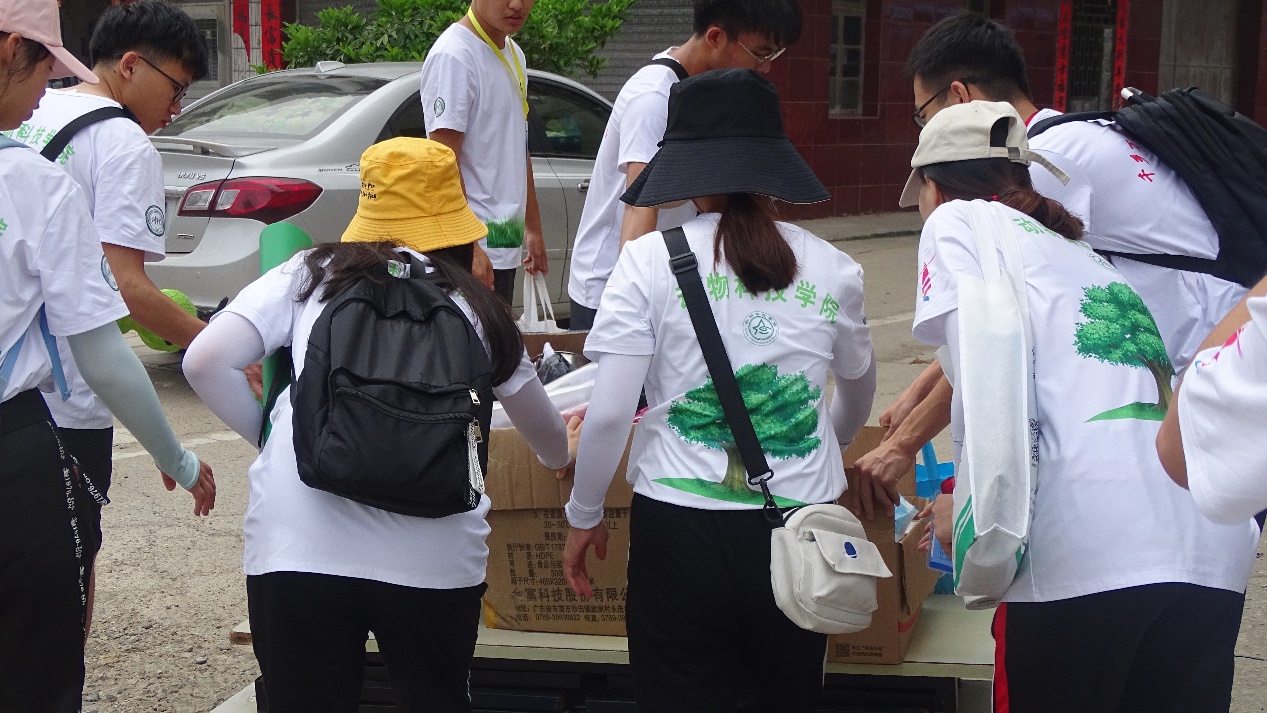 早上,宣传组与调研组一同前往马头镇镇政府摆点宣传工作以及调研。为了宣传效果更佳,两组组员们提着调查问卷、物资以及扇子等礼品前往摆点地进行布置。