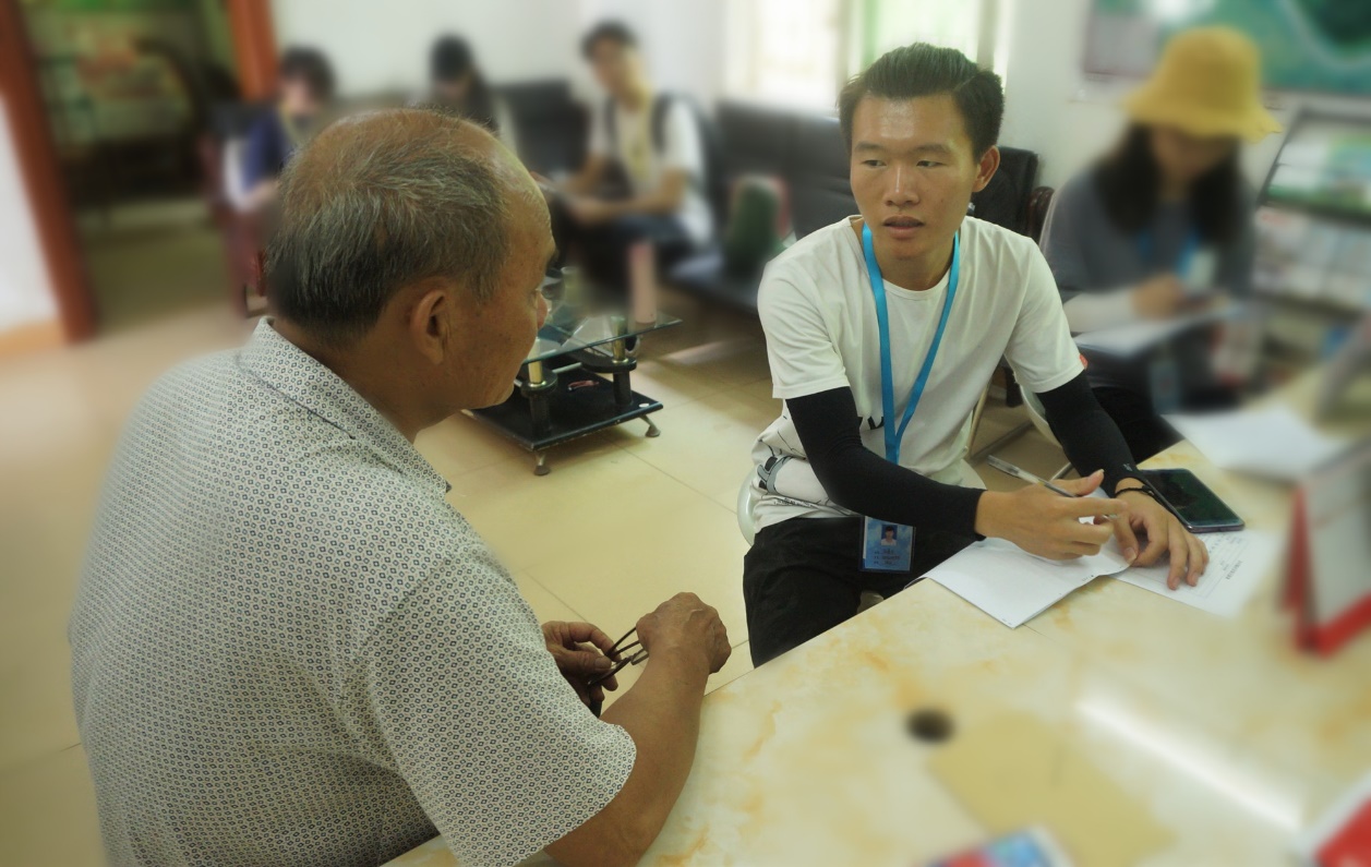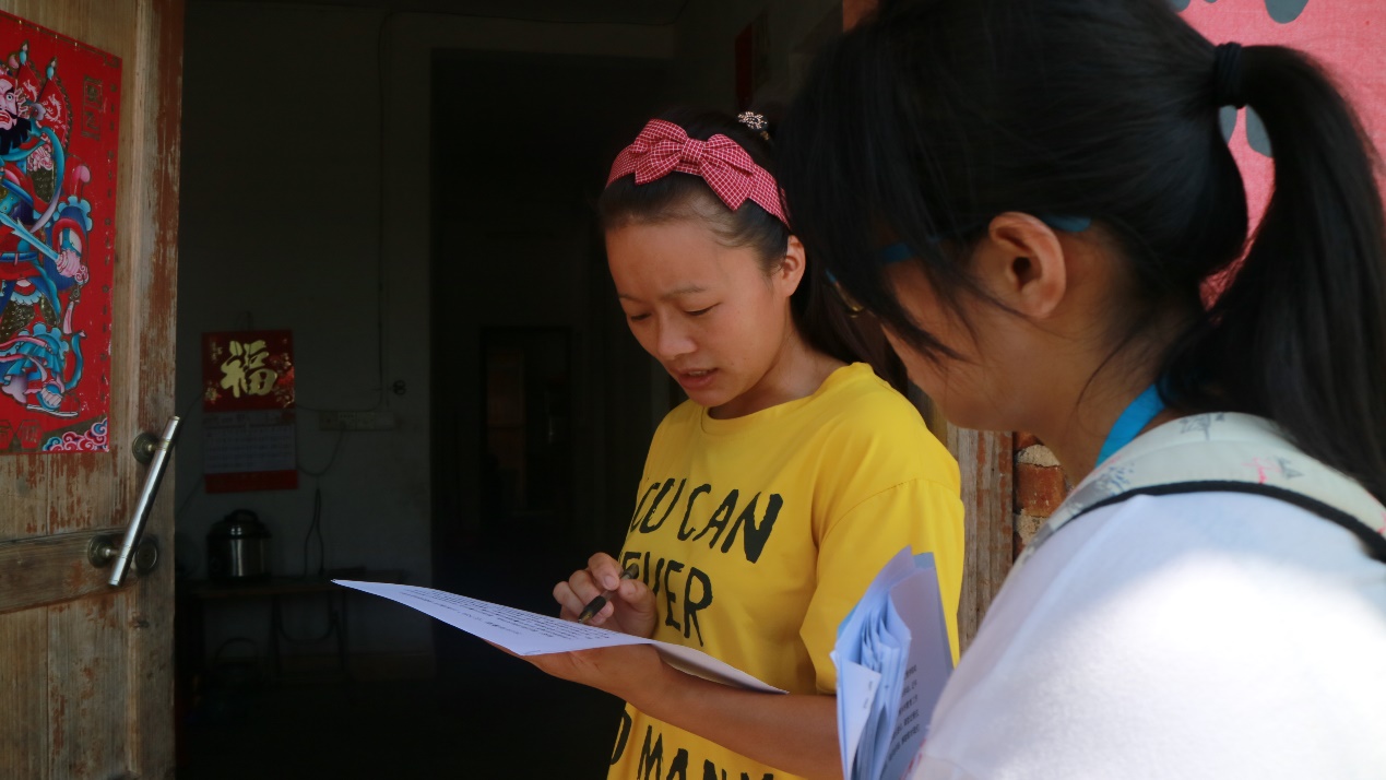调研组首先前往乌石岗村许屋坝和军屯村进行问卷调查,组员们穿行于阡陌交通的乡间,挨家挨户进行访问。当地居民十分热情好客,待人亲切,他们积极地完成问卷并对他们所遇到的资助问题提出建议。