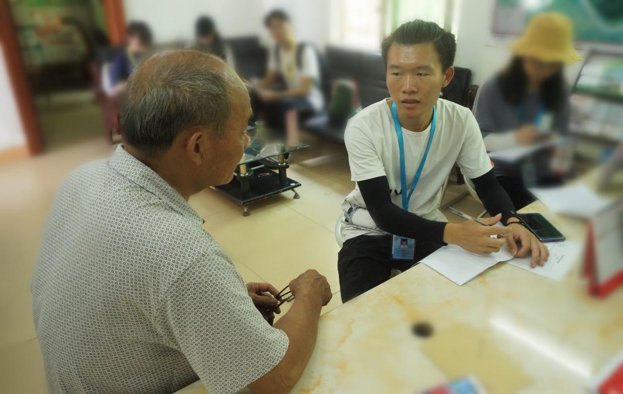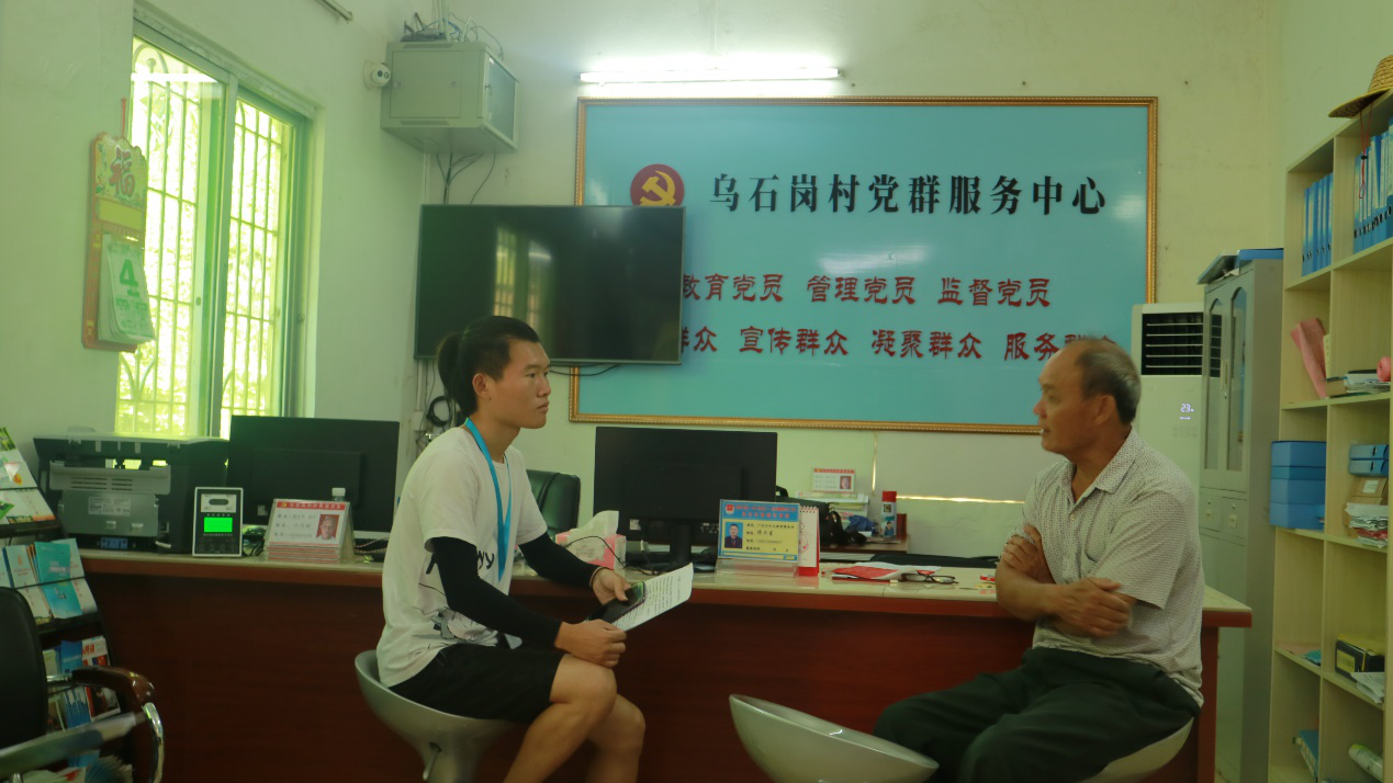 上午8时,调研组、义教组、宣传组同时出发前往各组的目的地开始今天的实践调研活动。调研1组前往乌石岗村许屋坝和军屯村进行有关“乡村基础教育情况及存在问题”问卷调查,组员们穿行于阡陌交通的乡间,挨家挨户进行访问。当地居民十分热情好客,待人亲切,他们积极地完成问卷并对乡村教育问题提出建议。调研1组还到乌石岗村党群服务中心进行有关“乡村振兴”和“乡村基础教育”的访谈,组员们了解到乌石岗村近几年的扶贫情况和发展方向,同时了解到当地目前的基础教育情况和存在的一些问题。而调研2组则前往新丰县进行调研、访谈活动。调研过程中,有幸遇到伟德国际唯一官网入口13届毕业生曾师兄并对其进行了有关国家出台“乡村振兴”政策的访谈,组员们收获了曾师兄对这一相关问题比较全面的回答。尽管烈日炎炎,暑气蒸人,调研组的组员们浑身被汗水浸湿,但每一位组员不辞辛苦、毫不懈怠,都抱着对调研的热情,认真做好每一次的问卷调查和每一次访谈。