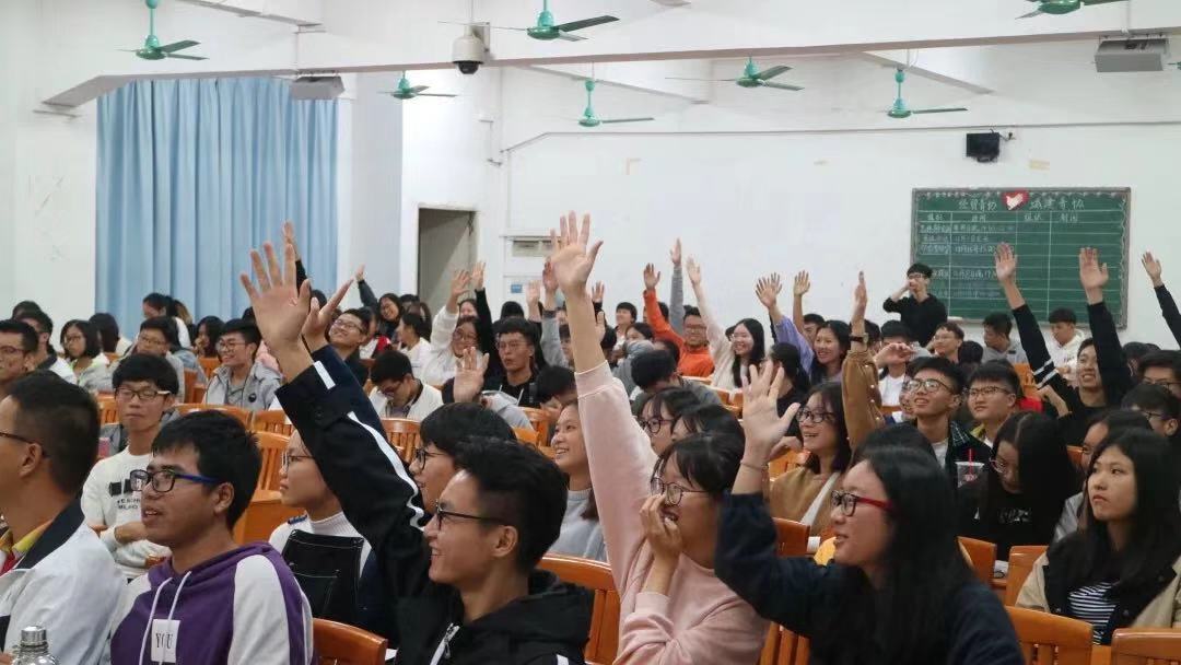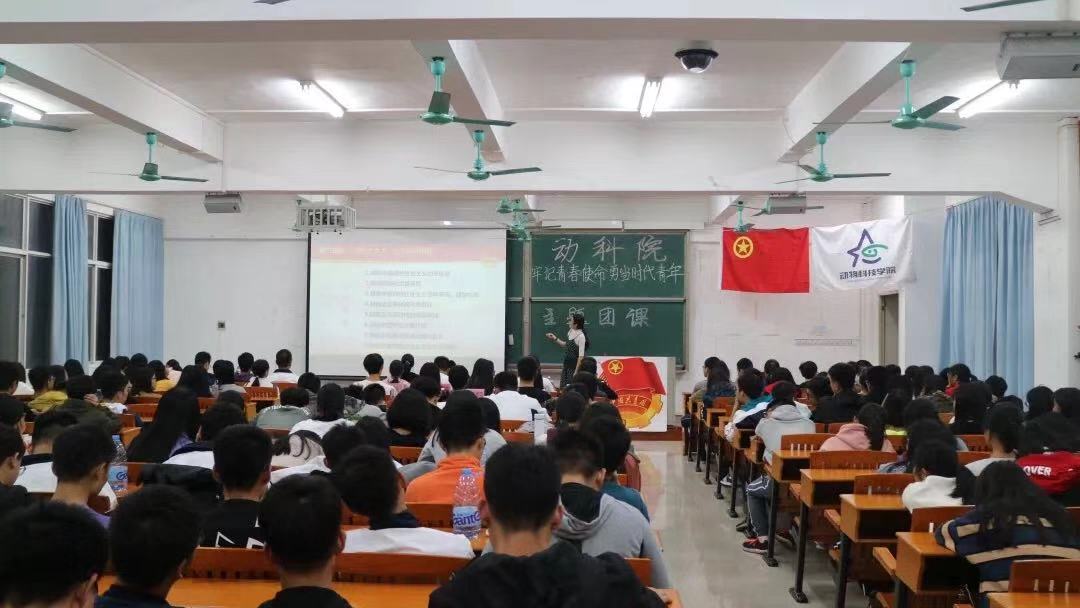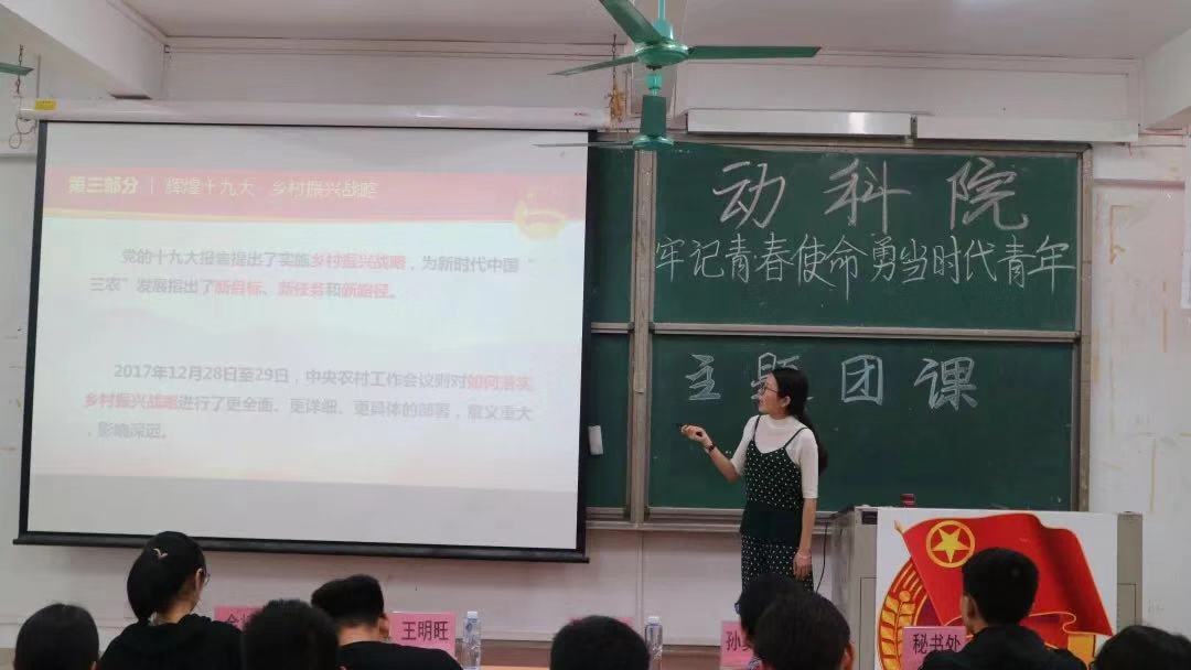 在庄严的中国共青团团歌中团课拉开帷幕,全体学员起立奏唱团歌后,团课正式开始。许鸿简单介绍了中国共青团史、团员的权力和义务以及习近平总书记的重要讲话精神,着重讲述了关于十九大的乡村振兴战略,其中提及了大会主题和战略的具体实施,许鸿还深刻诠释了信仰的重要性,提出了勇敢坚持党的路线不动摇、重视团队精神、培养集体荣誉感的重要观点。最后许鸿号召同学们跟进时代,做时代新青年,希望同学们在今后的学习工作中, 认真落实、 互相帮助、团结友好。许鸿还设立了团课知识竞答的互动环节,丰富了课堂学习内容。同学们们踊跃发言,积极参与,课堂气氛格外活跃。