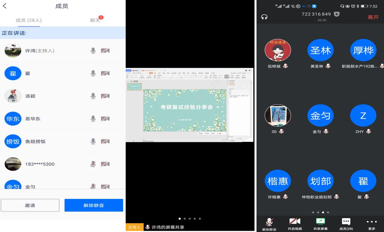在经验分享环节,易华东、李伟业分别介绍了自身考研复试的经历,分享了复试的宝贵经验和成功秘籍,为学弟学妹们加油鼓劲。即将参加复试的同学也纷纷就复试的各个环节存在的疑惑进行提问,易华东和李伟业均一一做了详细的解答。整个考研复试经验分享会在紧张而不失欢快的氛围中进行。
