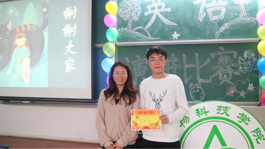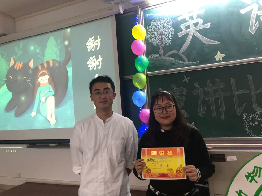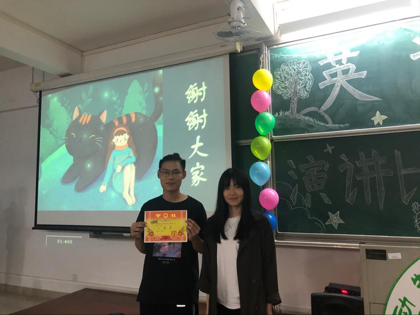 主持人宣布比赛规则后,比赛正式开始。选手们在演讲台上滔滔不绝,文采飞扬,意气风发,英姿飒爽,以精辟的辞藻对红色精神、新时代精神等进行了激情澎湃的讲述,精彩绝伦,赢得台下观众的喝彩。精彩的演讲之后,又来到有趣的游戏环节:传递糖果福袋。在糖果传递过程中,观众的欢笑声此起彼伏,原本紧张的比赛气氛转眼变得愉快起来。游戏环节结束后,成绩已经统计好。最终水产192龚辰How to balance study and a part-time job的演讲获得第三名,动医201刘俊斌Youth never give up的演讲获得了第二名,而动医182陈飞帆凭借The influence of red spirit on youth的演讲荣获第一名,三位辅导员分别为三位获奖选手颁发奖状,同时宣告bevictor伟德官网第十七届英语演讲比赛初赛圆满结束。