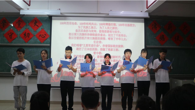 活动的中场,由团委的全体成员激情澎湃的朗诵了《西江月·井冈山》和《浪淘沙·北戴河》红色诗词。