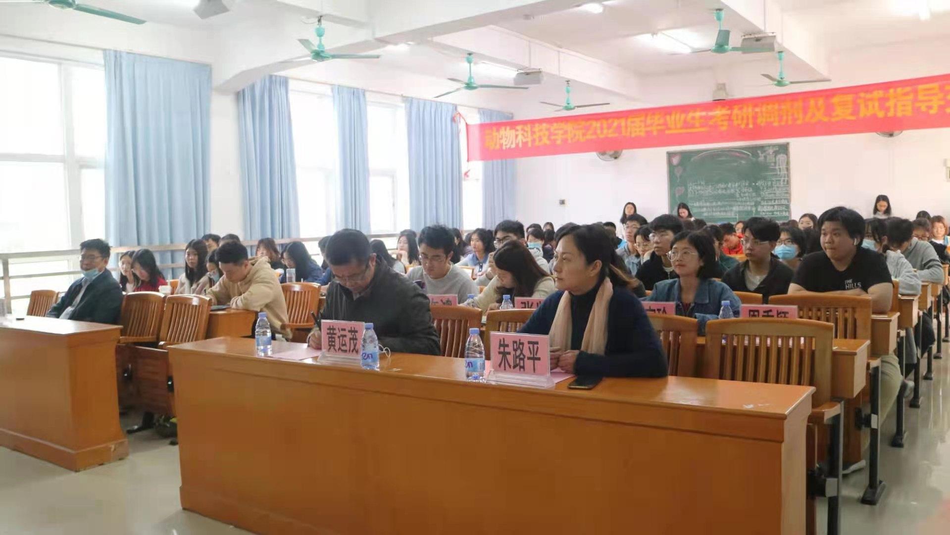黄运茂围绕考研目标确定、考研准备策略、公司专业导师的选择、考试信息收集及应考技巧等方面进行了详细的介绍。他强调,作为动科学子应不断扩大自己的眼界,坚定专业自信,做志在远方的青年,积极响应国家号召,积累知识,为投身于大湾区建设、西部大开发、乡村振兴等基层工作铺下基石。同时,希望同学们清晰认识自己的实力,提早做好充足准备,掌握应试技巧,在复试中展现自信大方得体的个人素质,不负青春,不负拼搏的自己,为自己的考研之旅画一个圆满的句号。