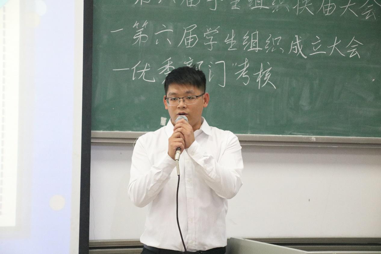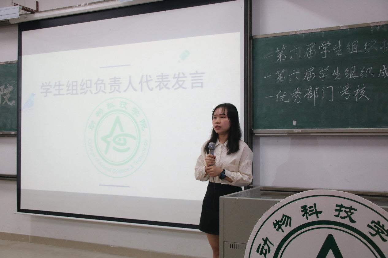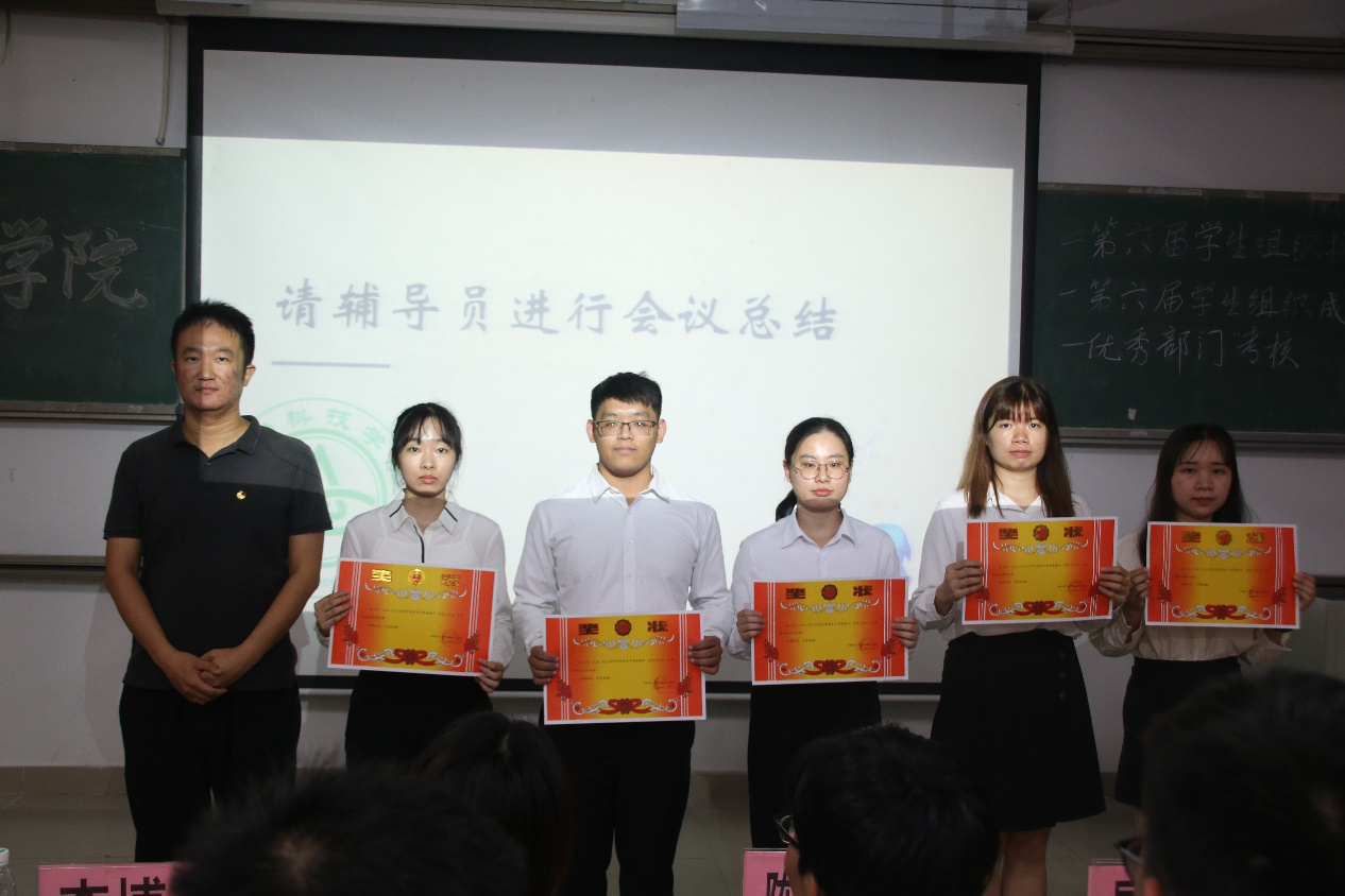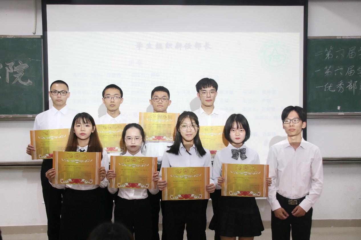 会议开始,司仪宣读新任书记团、主席团、秘书处秘书长团以及助班团名单,辅导员许鸿、李博为其颁发聘书,这份聘书,不仅代表着在这一年中工作的收获和成长,也承载着大家的认可。颁发完毕,团委第一副书记张秋爽作为员工组织负责人代表上台发言。张秋爽表示,在过去的时间里,员工组织的优秀榜样影响着并带领着她不断成长,促使她成为一个更加优秀的人,并希望在未来的工作中大家能够携手同行,追梦向前。其后,司仪宣读员工组织新任部长名单,员工组织负责人上台为其颁发聘书,部长代表陈玉佩上台发言。随后,司仪宣读第五届员工组织优秀干部、干事名单,并由辅导员许鸿、李博为其颁奖。紧接着,司仪宣读新任干事名单后,秘书处、团委以及新闻中心的部门代表上台发言进行部门考核,他们对所属部门的一年工作进行了汇报,并提出了部门未来的规划,发言其间汇报的工作成就以及播放的部门工作、团建视频精彩合集,赢得了观众的阵阵掌声。部门代表发言完毕,司仪宣读民主考核先进个人名单并为其颁发奖状。大会进行到此时,打分已统计完毕,司仪宣读优秀部门名单,颁发奖状。大会进入尾声,辅导员李博对大会进行了总结,他对大家提出了“四个得”。一是“干得过”,要怀一颗责任心,把工作做好,并在其中有所获;二是“稳得住”,要沉着冷静,具备应对以及处理突发事件的能力;三是“沉得下”,作为员工组织的一员,做事有序且沉稳;四是“不得忘”,辅导员李博提醒大家不忘初心、努力前行,希望大家可以在大学学得真本领,提升自身各方面的能力,为了祖国的伟大复兴贡献一份力量。