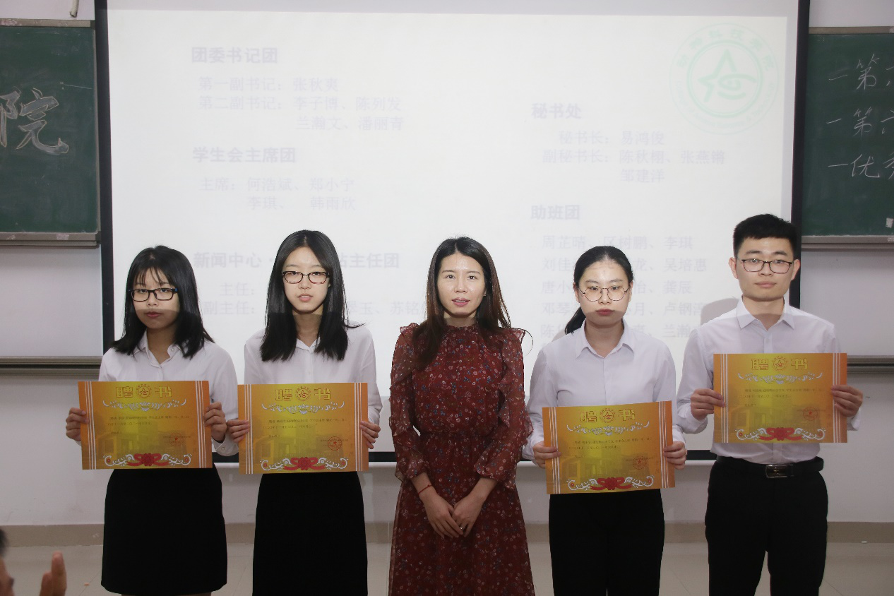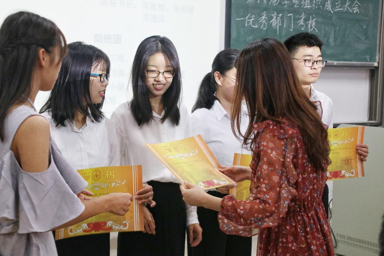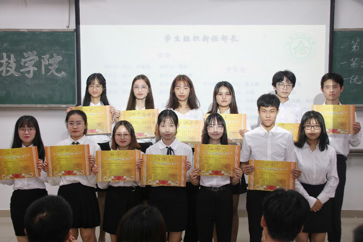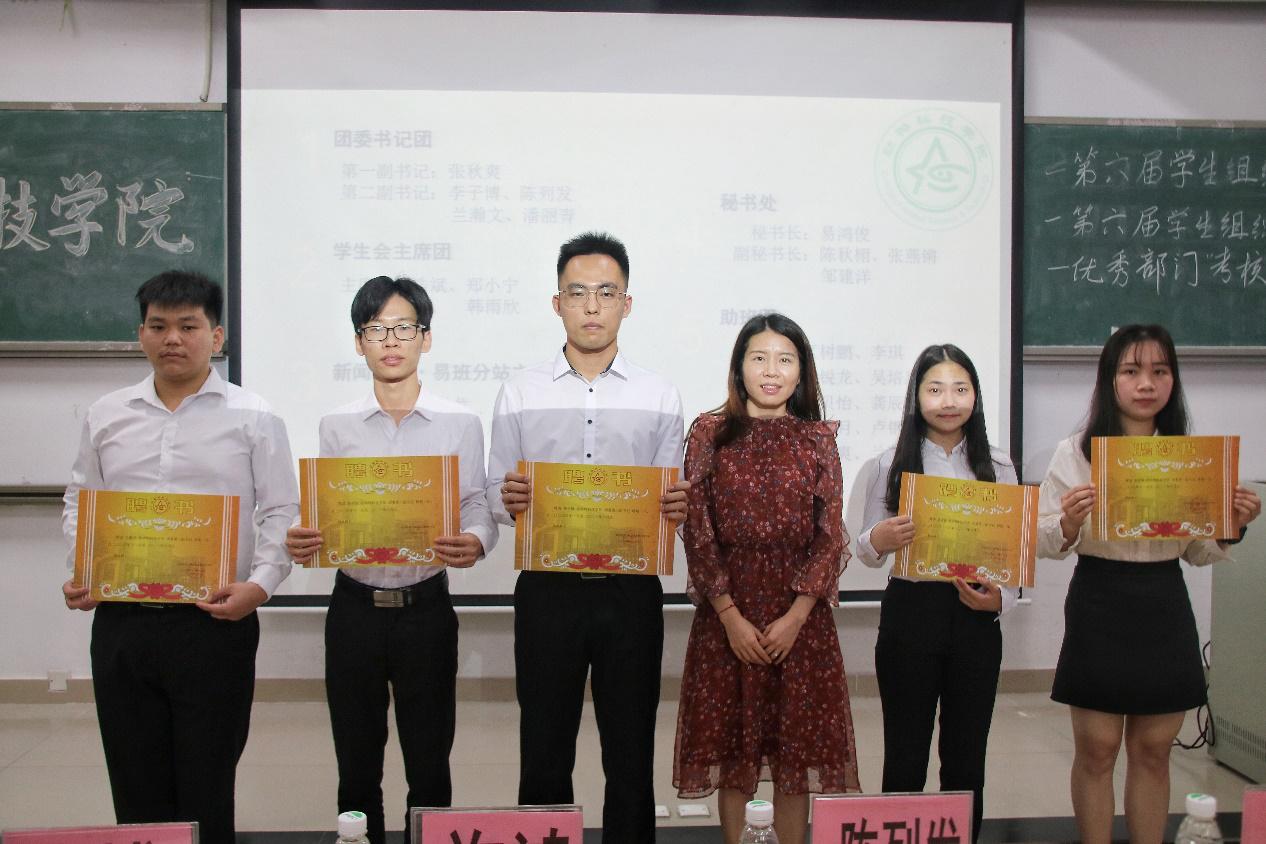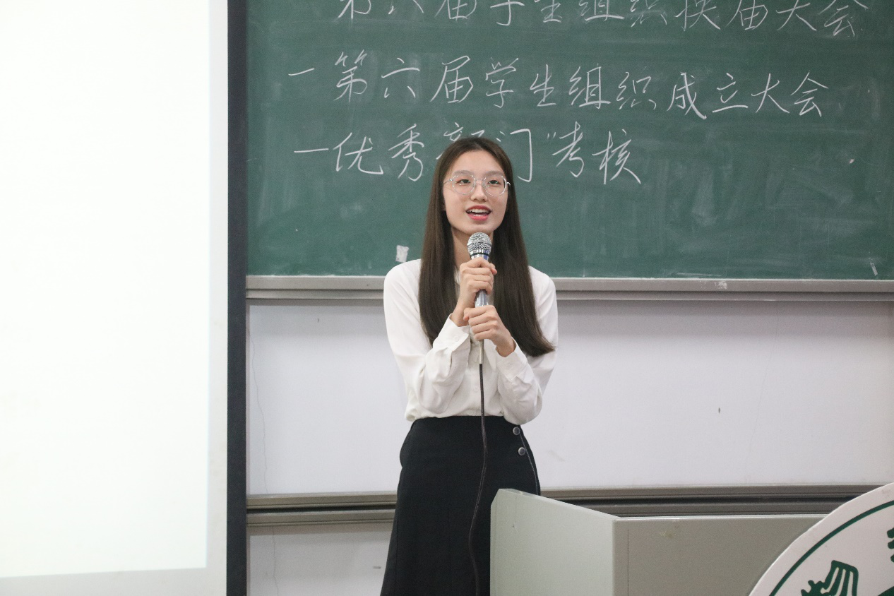 会议开始,司仪宣读新任书记团、主席团、秘书处秘书长团以及助班团名单,辅导员许鸿、李博为其颁发聘书,这份聘书,不仅代表着在这一年中工作的收获和成长,也承载着大家的认可。颁发完毕,团委第一副书记张秋爽作为员工组织负责人代表上台发言。张秋爽表示,在过去的时间里,员工组织的优秀榜样影响着并带领着她不断成长,促使她成为一个更加优秀的人,并希望在未来的工作中大家能够携手同行,追梦向前。其后,司仪宣读员工组织新任部长名单,员工组织负责人上台为其颁发聘书,部长代表陈玉佩上台发言。随后,司仪宣读第五届员工组织优秀干部、干事名单,并由辅导员许鸿、李博为其颁奖。紧接着,司仪宣读新任干事名单后,秘书处、团委以及新闻中心的部门代表上台发言进行部门考核,他们对所属部门的一年工作进行了汇报,并提出了部门未来的规划,发言其间汇报的工作成就以及播放的部门工作、团建视频精彩合集,赢得了观众的阵阵掌声。部门代表发言完毕,司仪宣读民主考核先进个人名单并为其颁发奖状。大会进行到此时,打分已统计完毕,司仪宣读优秀部门名单,颁发奖状。大会进入尾声,辅导员李博对大会进行了总结,他对大家提出了“四个得”。一是“干得过”,要怀一颗责任心,把工作做好,并在其中有所获;二是“稳得住”,要沉着冷静,具备应对以及处理突发事件的能力;三是“沉得下”,作为员工组织的一员,做事有序且沉稳;四是“不得忘”,辅导员李博提醒大家不忘初心、努力前行,希望大家可以在大学学得真本领,提升自身各方面的能力,为了祖国的伟大复兴贡献一份力量。