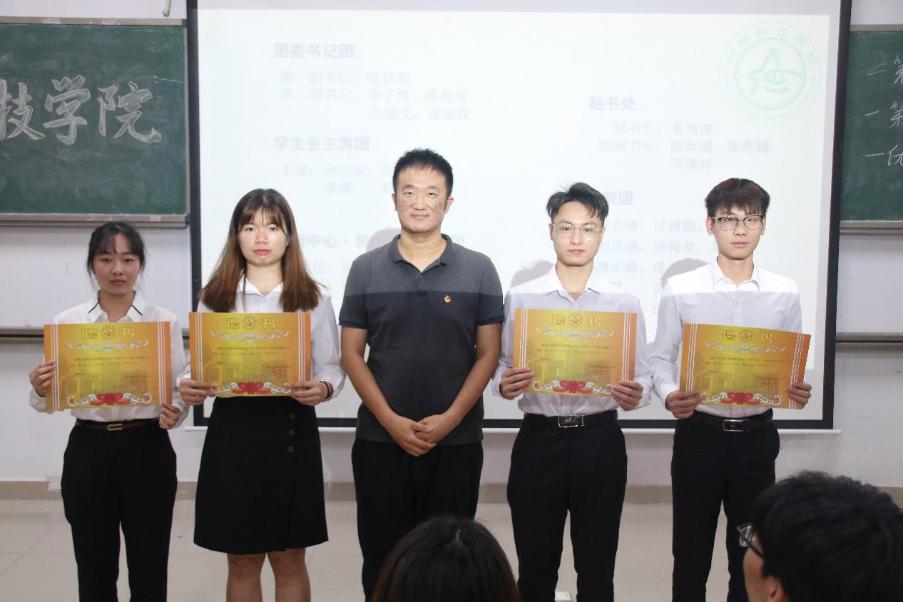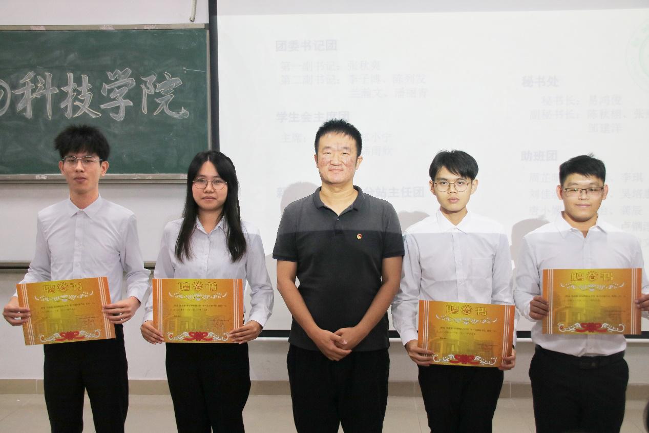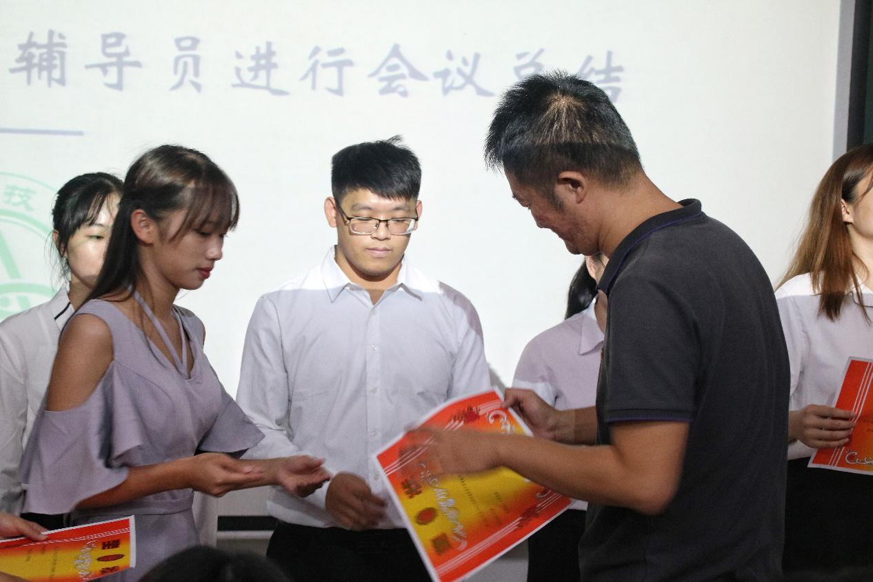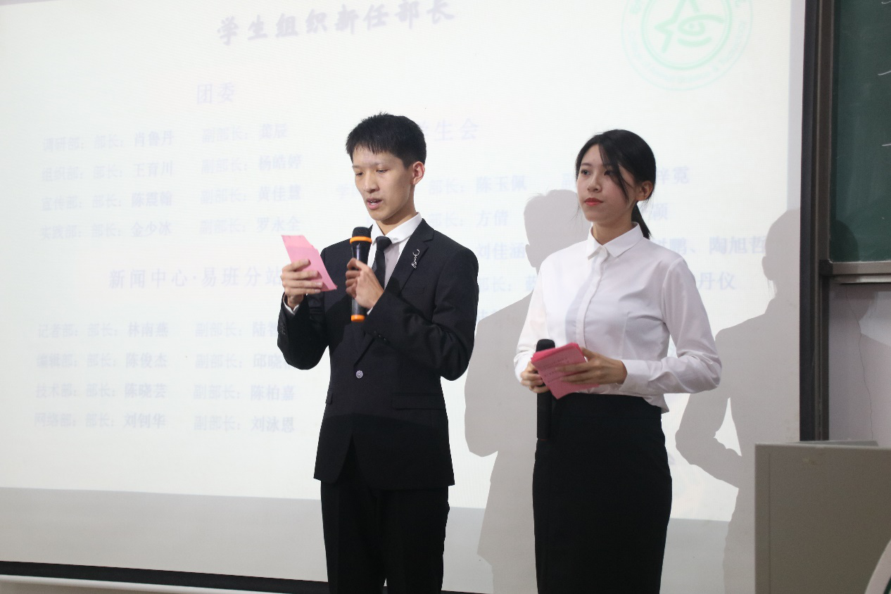 会议开始,司仪宣读新任书记团、主席团、秘书处秘书长团以及助班团名单,辅导员许鸿、李博为其颁发聘书,这份聘书,不仅代表着在这一年中工作的收获和成长,也承载着大家的认可。颁发完毕,团委第一副书记张秋爽作为员工组织负责人代表上台发言。张秋爽表示,在过去的时间里,员工组织的优秀榜样影响着并带领着她不断成长,促使她成为一个更加优秀的人,并希望在未来的工作中大家能够携手同行,追梦向前。其后,司仪宣读员工组织新任部长名单,员工组织负责人上台为其颁发聘书,部长代表陈玉佩上台发言。随后,司仪宣读第五届员工组织优秀干部、干事名单,并由辅导员许鸿、李博为其颁奖。紧接着,司仪宣读新任干事名单后,秘书处、团委以及新闻中心的部门代表上台发言进行部门考核,他们对所属部门的一年工作进行了汇报,并提出了部门未来的规划,发言其间汇报的工作成就以及播放的部门工作、团建视频精彩合集,赢得了观众的阵阵掌声。部门代表发言完毕,司仪宣读民主考核先进个人名单并为其颁发奖状。大会进行到此时,打分已统计完毕,司仪宣读优秀部门名单,颁发奖状。大会进入尾声,辅导员李博对大会进行了总结,他对大家提出了“四个得”。一是“干得过”,要怀一颗责任心,把工作做好,并在其中有所获;二是“稳得住”,要沉着冷静,具备应对以及处理突发事件的能力;三是“沉得下”,作为员工组织的一员,做事有序且沉稳;四是“不得忘”,辅导员李博提醒大家不忘初心、努力前行,希望大家可以在大学学得真本领,提升自身各方面的能力,为了祖国的伟大复兴贡献一份力量。