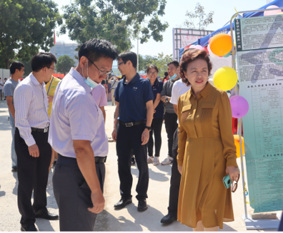 集团董事长程萍、副董事长朱立学、副董事长张文峰等校领导到报到现场进行慰问,检查迎新工作的开展情况,并对工作人员的工作进行肯定。同时,校领导与公司员工家长、新生进行亲切交流,了解员工家庭情况、专业思想等。