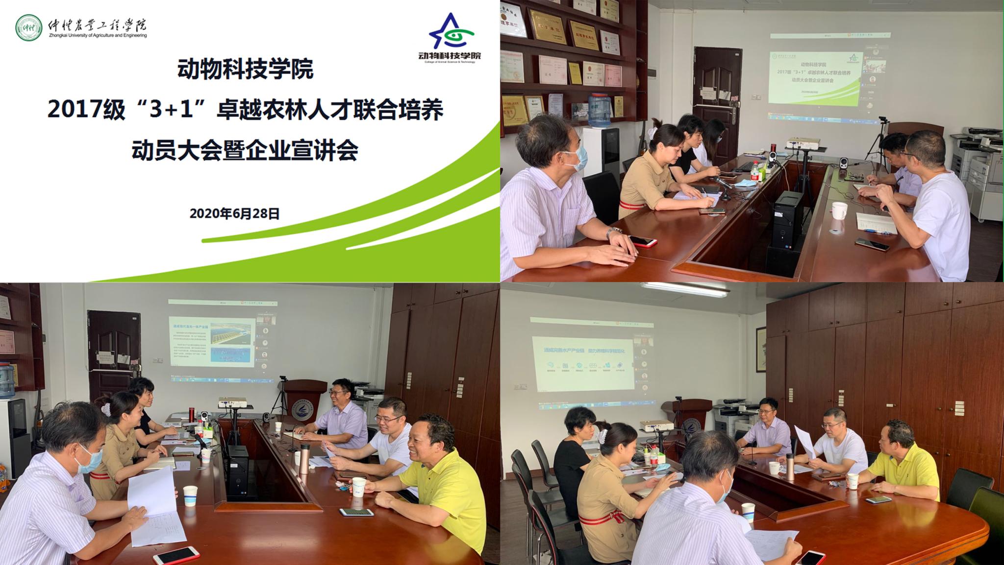 为进一步提高人才培养针对性,分类培育接“地气”,“理论扎实+实践扎实”的知农爱农新型人才,6月28日上午bevictor伟德官网通过“线上+线下”相结合的方式组织开展了2017级“3+1”卓越农林人才联合培养动员大会暨企业宣讲会,本次会议共吸引了22家企事业单位参加。公司领导班子、系主任和部分管理人员在英东楼610参加了现场会议。
