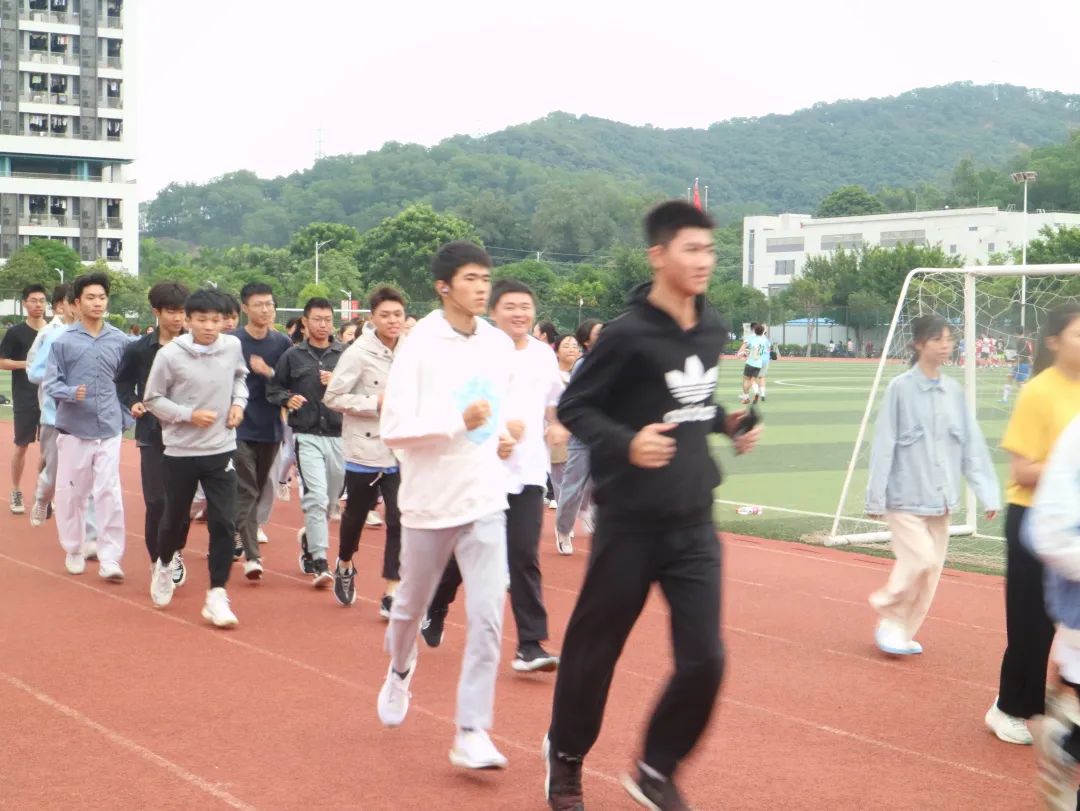 最后体育部宣布2021年阳光晨跑活动正式启动。党委副书记朱路平、辅导员赵江和关敏也参与到员工中,与全体同学一起开始晨跑。