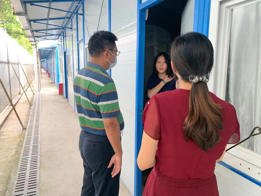 欧坚泉一行随后去隔离宿舍探望因病未能参加军训的同学,询问了员工的身体状况及后勤保障工作,嘱咐员工要谨遵医嘱,按时服药,及时上报体温监测。同学们纷纷表示深切感受到来自公司和公司的关怀,一定以最饱满的热情、最昂扬的姿态,为此次军训交上一副满意的答卷。