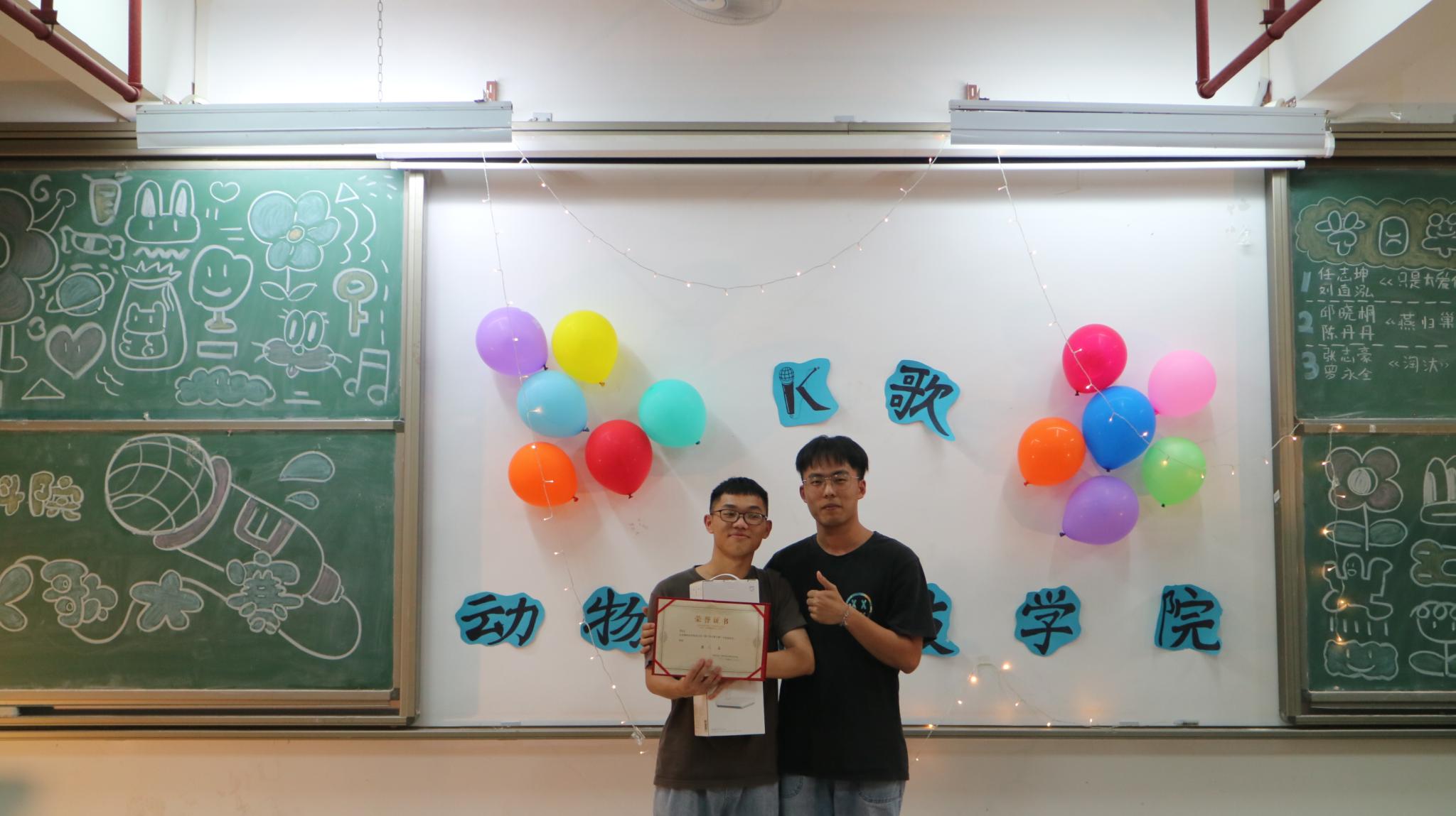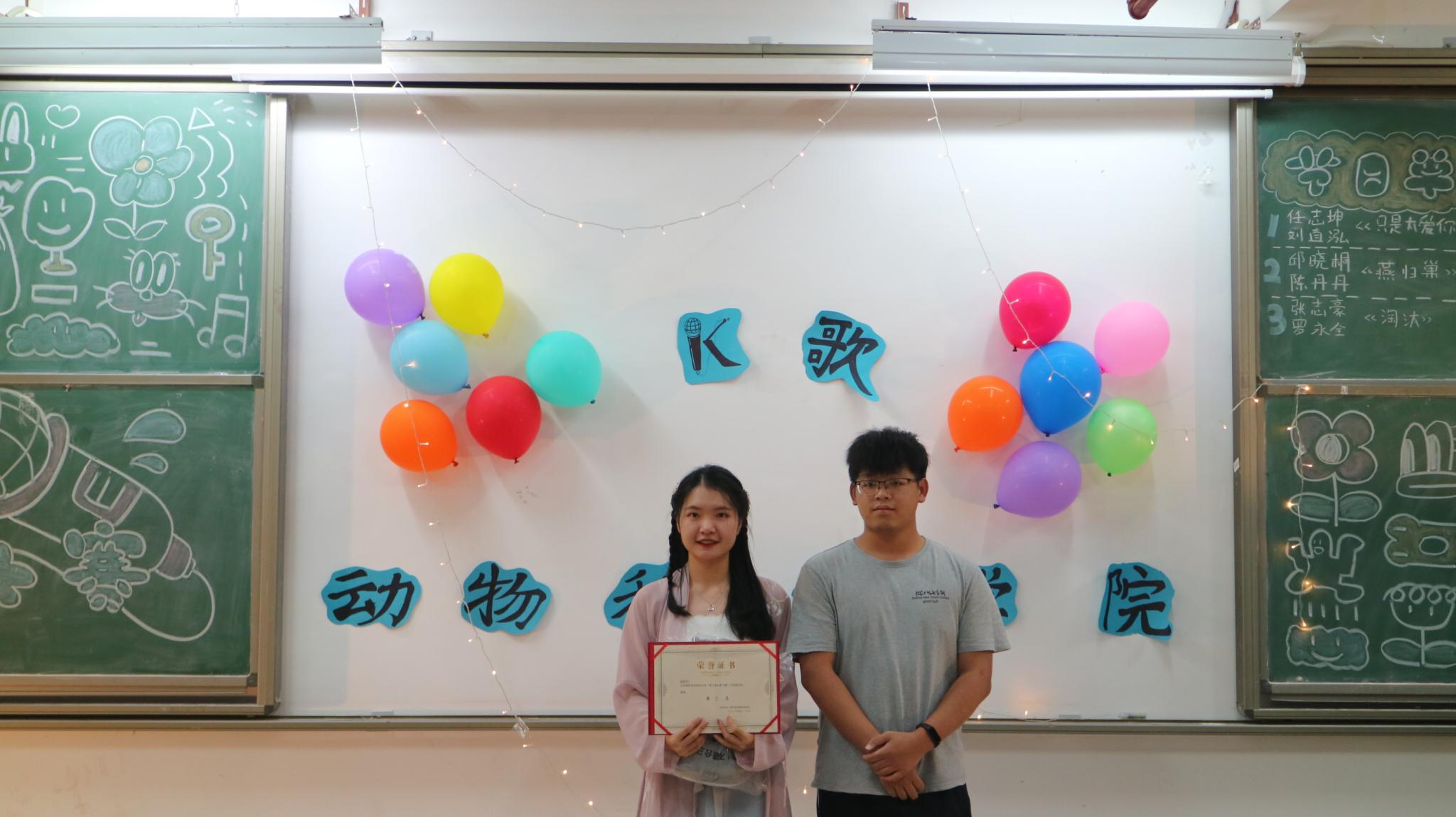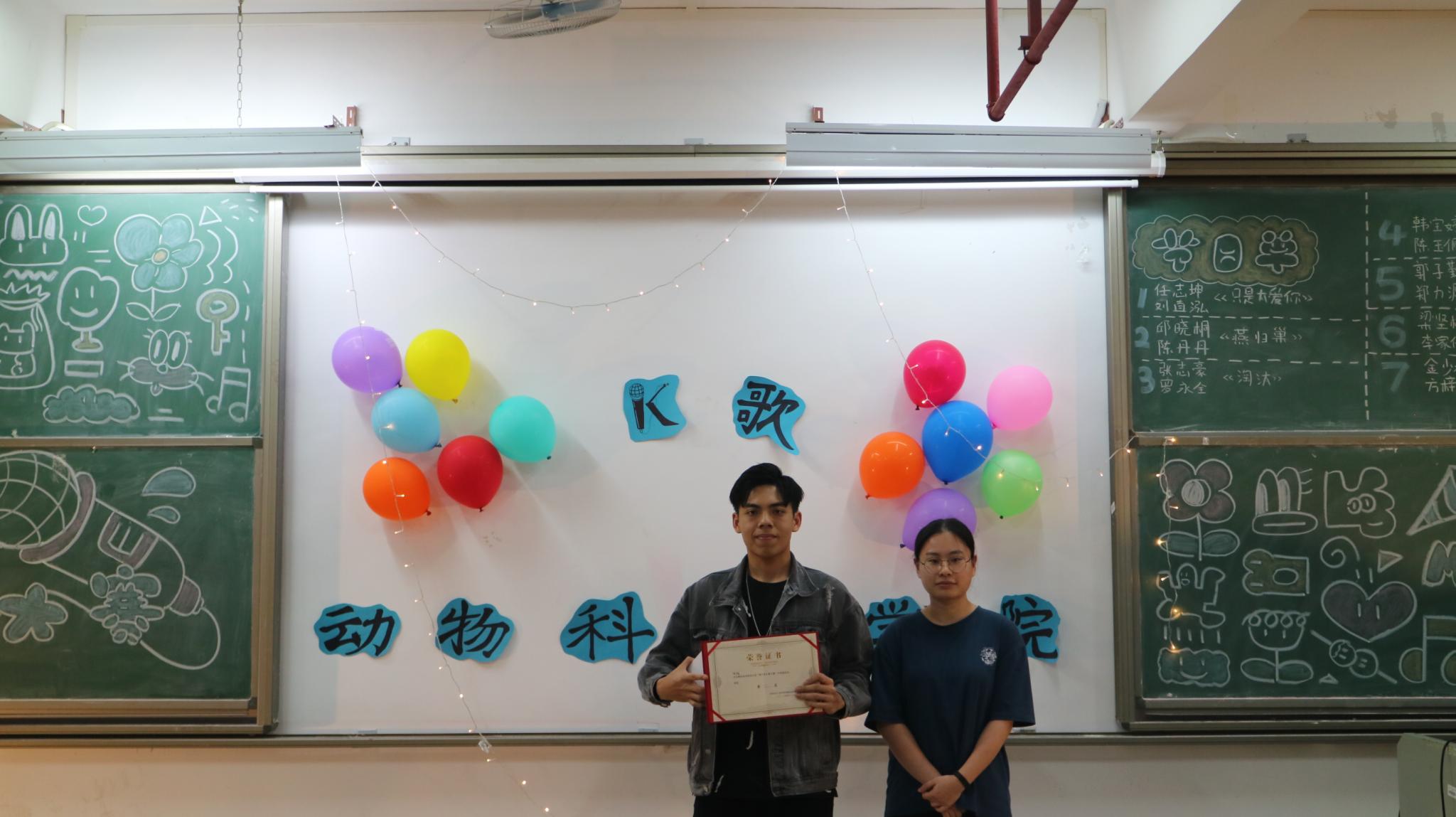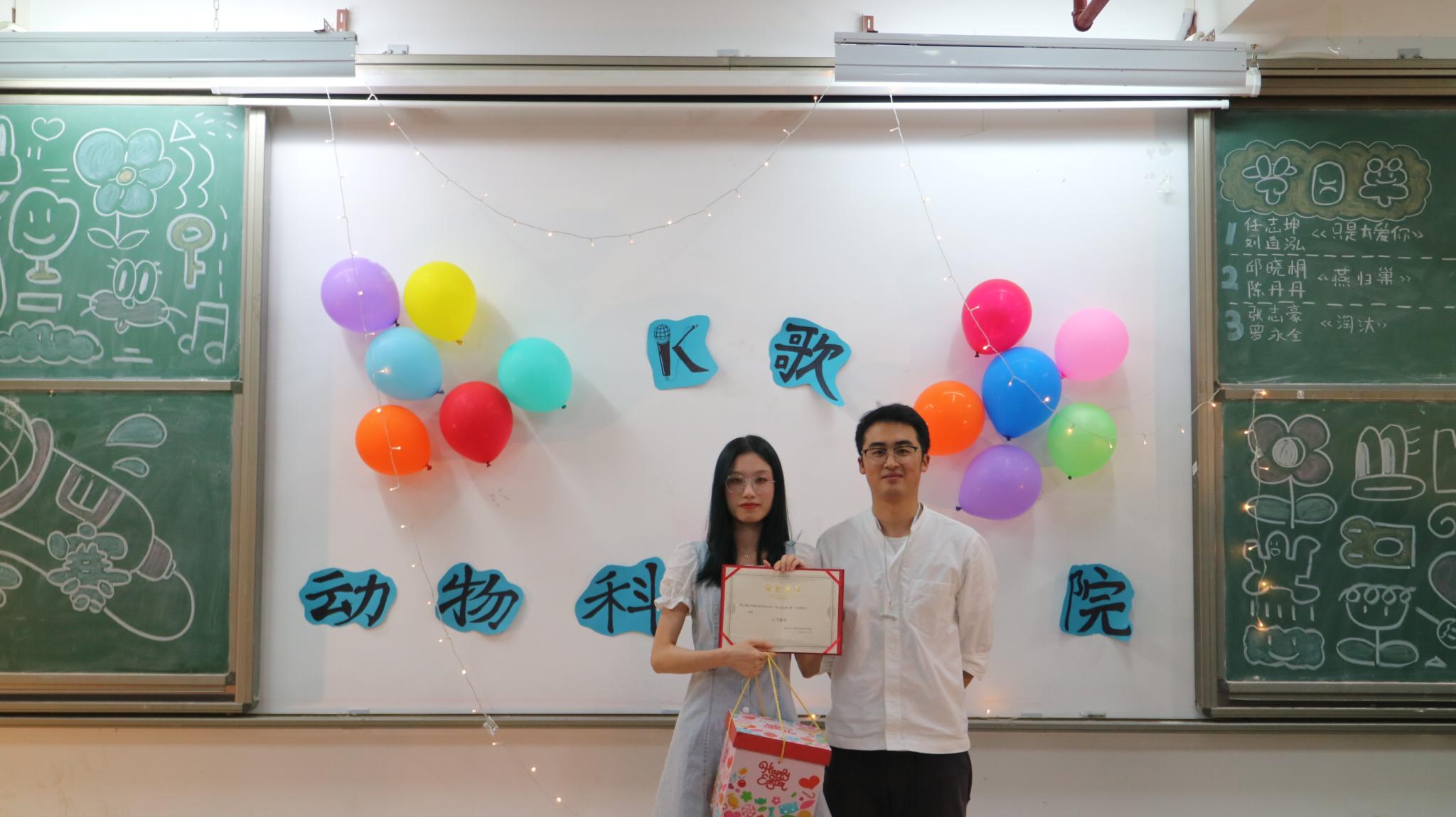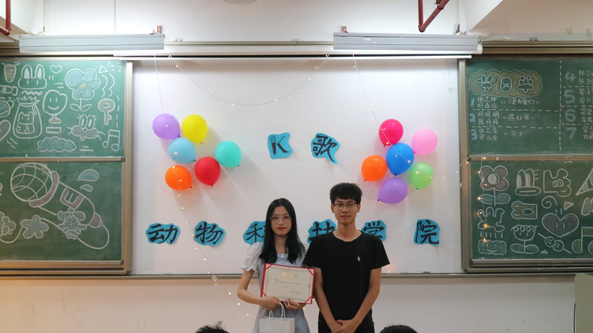 任志坤演唱的《传闻》,深情款款,赢得观众的阵阵掌声;陈丹丹带来的歌曲《请笃信一个梦》,她温柔的嗓音让观众沉浸其中;罗永全的《生而为人》,歌声富含情感和故事;韩宝婷带来的《街灯晚餐》,流动的音符圆滑动听,伴随美妙的歌声悠扬宛转,观众们伴随着旋律挥手;陈玉佩演唱的《至少还有你》,余音袅袅,不绝如缕;郭子勤的倾情献唱,带来《我》,现场气氛安静,观众仔细聆听,沉醉其中;最后是张志豪的《黄金时代》,曲落,激烈的决赛也随之结束了。七位选手用音乐诠释热爱,用歌声点亮舞台,赢得场下观众的连连惊叹。最终,水产191的陈玉佩获得本次比赛的最佳人气奖以及第四名;获得第五名的是动医201陈丹丹;获得第三名的是动科192罗永全;动科183张志豪获得第二名;本次大赛的冠军获得者为动医201任志坤。