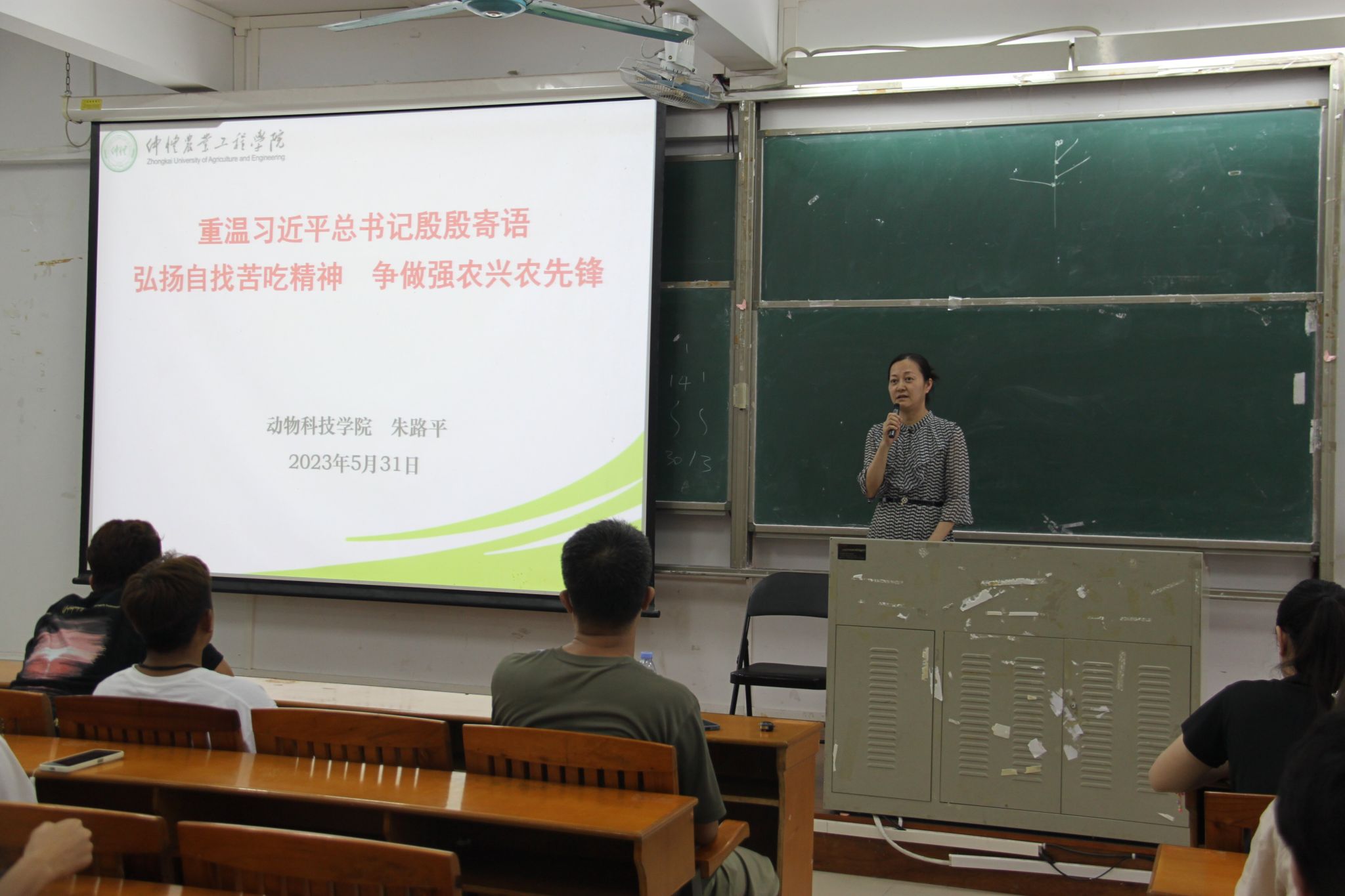 动医222班孙湘以《高考是你的高光时刻吗》为主题,从社会实践情况、班级情况、学习情况和未来规划四个方面对班级一年来同学们的学习生活情况进行了汇报。她表示高考或许是大家学习状态最好的时候,但绝不是最高光的时刻,不一样的选择可能有不一样的精彩。暂时看不到成果不代表没有成长,每个人要为长成参天大树而努力扎根、生长。