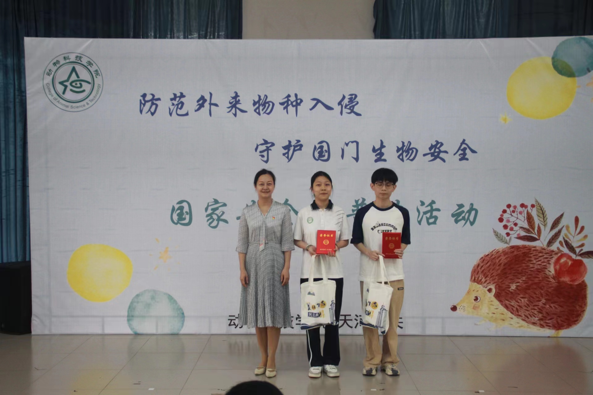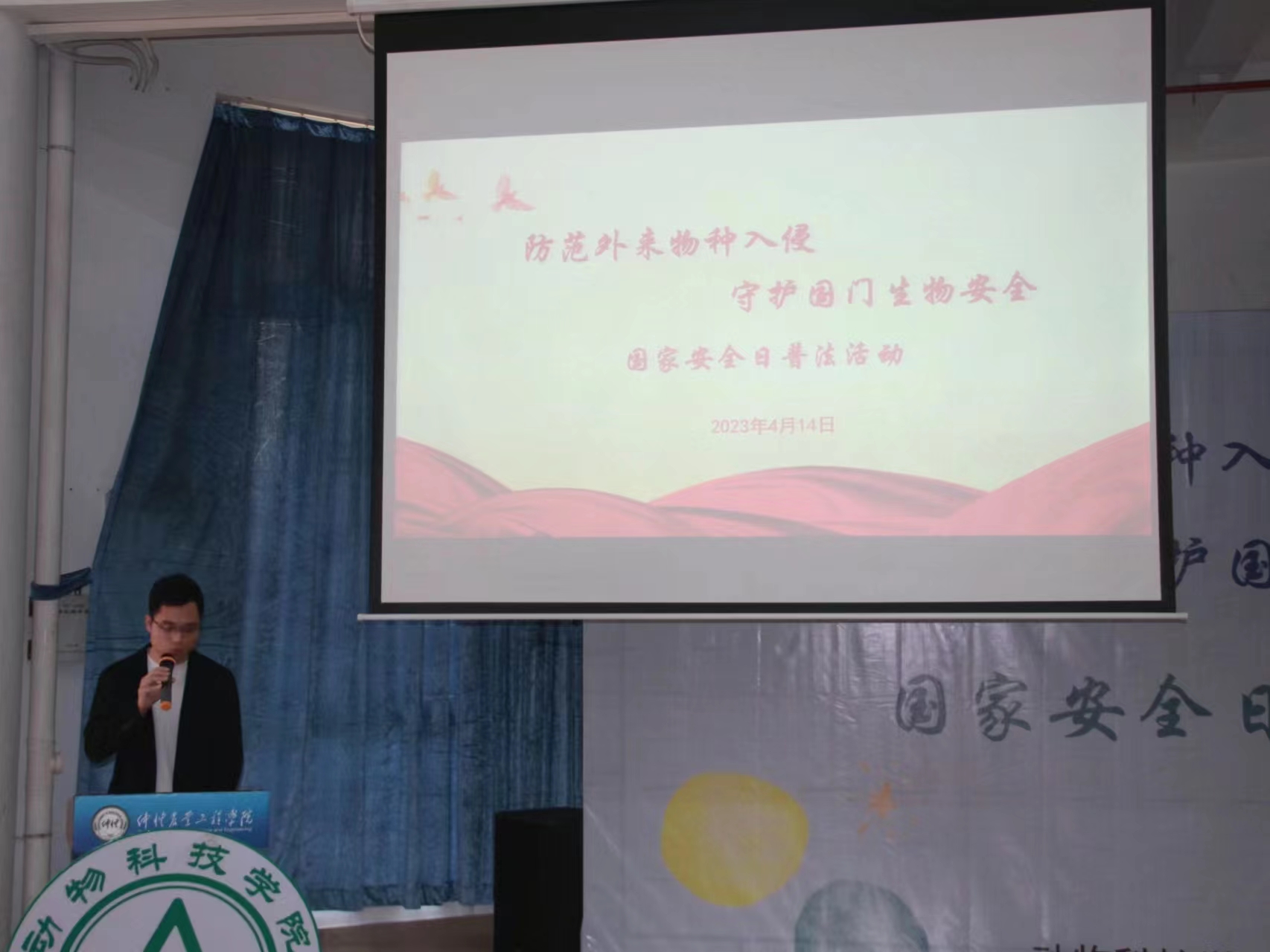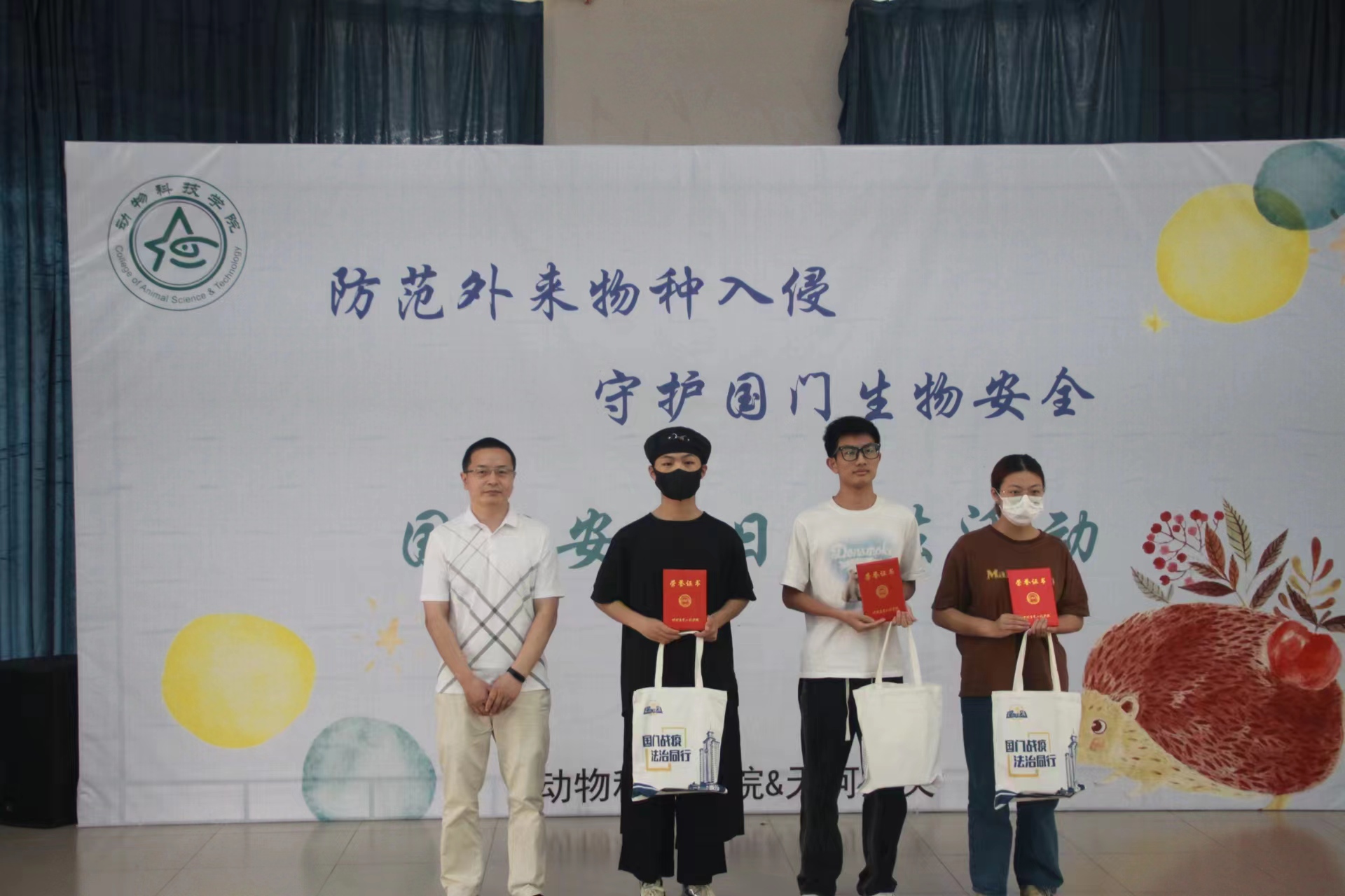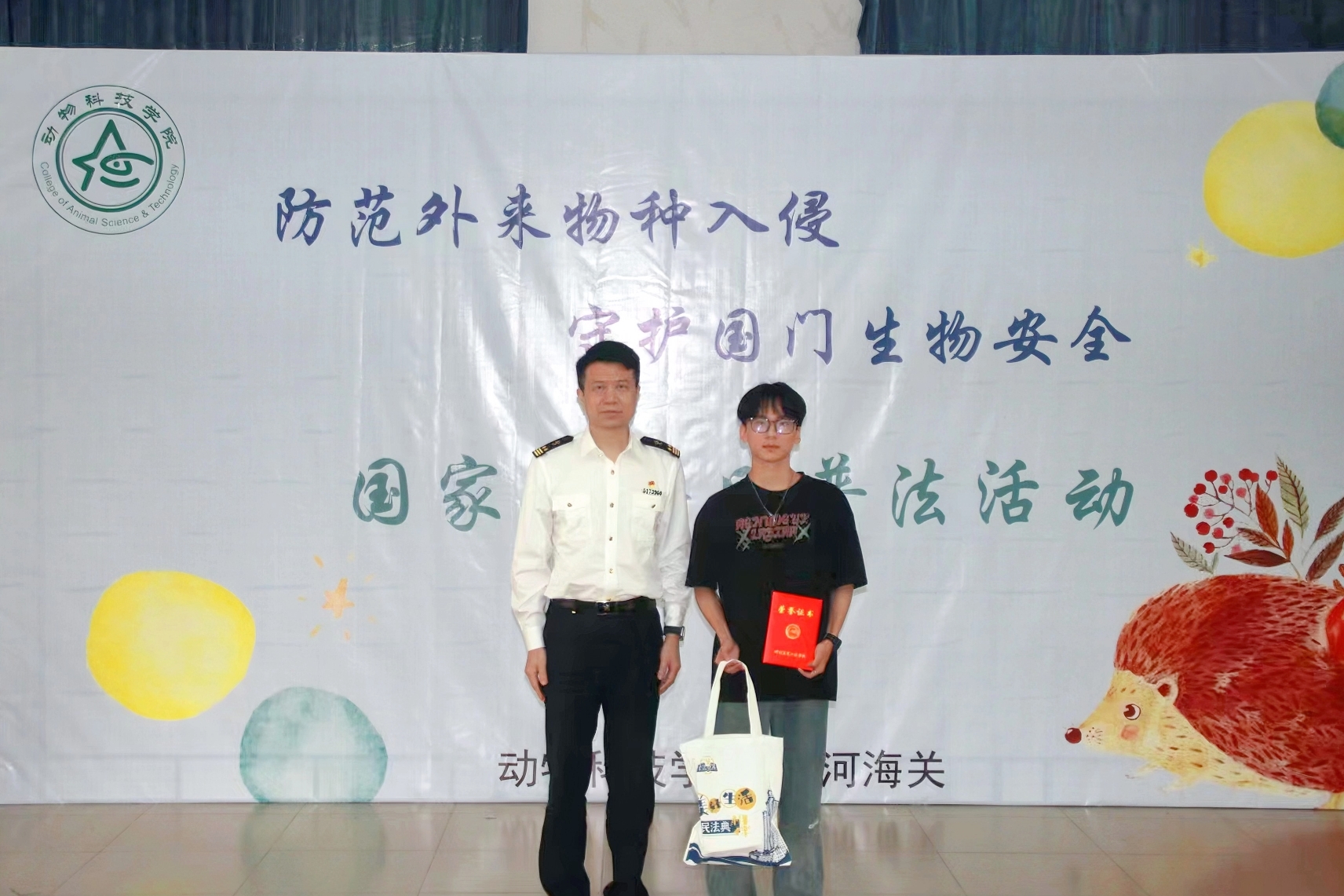 活动分为普法宣讲、检验检疫科普作品大赛、话剧表演等环节。首先是由天河海关团支部书记唐薇作生物安全与检疫知识普法宣讲。随后的检验检疫科普作品大赛,各组参赛选手带来了形式新颖、创意丰富的作品,带领大家深入了解生物安全的重要性和检验检疫相关的法律条款。经过评选,来自水产221班吴志洋等同学的作品《免疫行动科普》斩获一等奖。紧接着,老员工艺术团话剧社带来改编自海关日常查检案例的话剧表演《两条虫子的入境实录》,表演生动有趣,将现场氛围推向高潮。