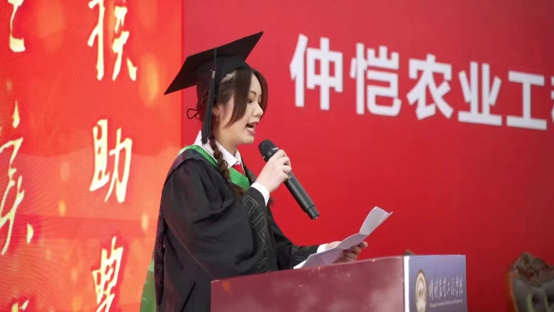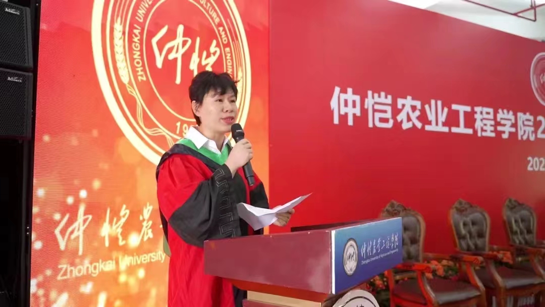 接着周萌向即将踏上新征程的毕业生们表示最热烈的祝贺,并提出了殷切的希望: 一是把握方向,勇敢前行,人无志而不立,只有树立理想和目标,才能收获诗和远方;二是心中有国,牢记使命,要有家国情怀和担当,把国家的利益和个人利益相结合,将小我融入大我;三是抓住机遇,勇于挑战,只有不怕困难迎难而上,才能获得成功;四是赓续仲恺精神,发扬仲恺精神。