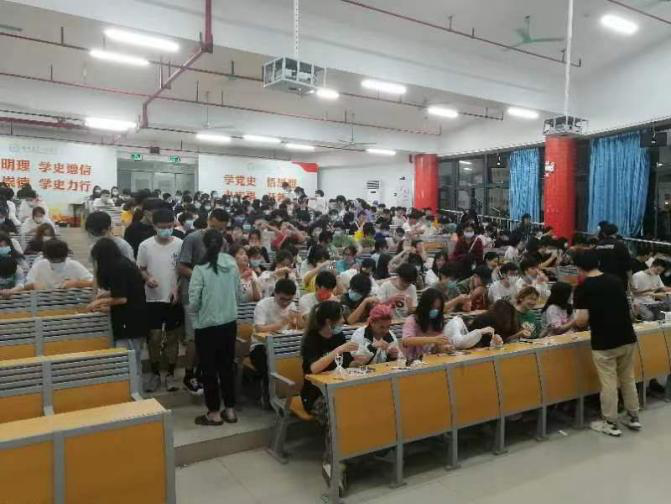 20: 42公司下发紧急通知,要求全院员工到D栋小礼堂前集合,开展核酸抗原自测的相关培训,公司相关老师、党员和全体在校生迅速响应号召,员工党支部成员抵达现场后,维持秩序,组织各班级有序列队,于21:20高效集合完毕。