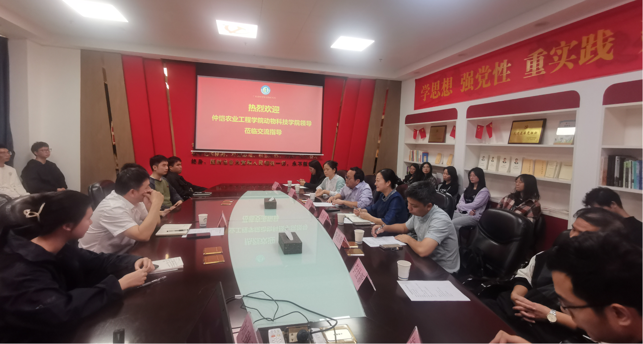 陈金平表达了对朱路平一行的热烈欢迎,所科研发展部汇报了广东省科公司动物研究所的优势学科发展和平台建设规划情况以及与公司开展实习生联合培养的情况。