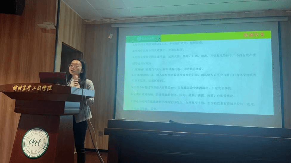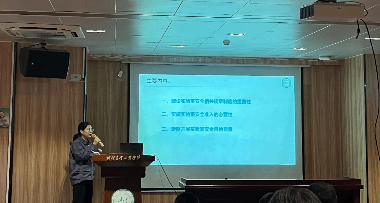 邢珏珺强调了危化品管理和做好使用记录的重要性,并对危化品预约流程进行了详细介绍,特别指出了员工进入实验室开展实验的具体要求,重点强调员工们落实好文件各项工作内容,遵守实验室规章制度,对自身安全负责。