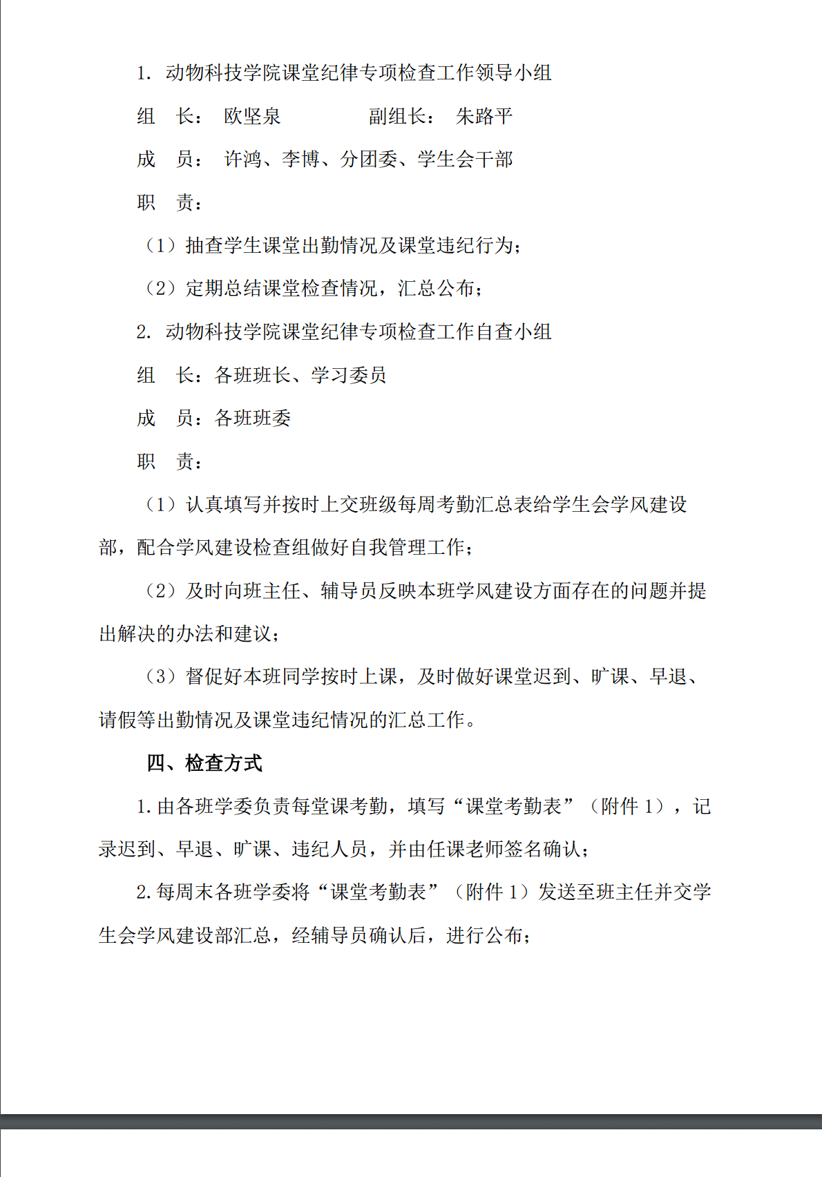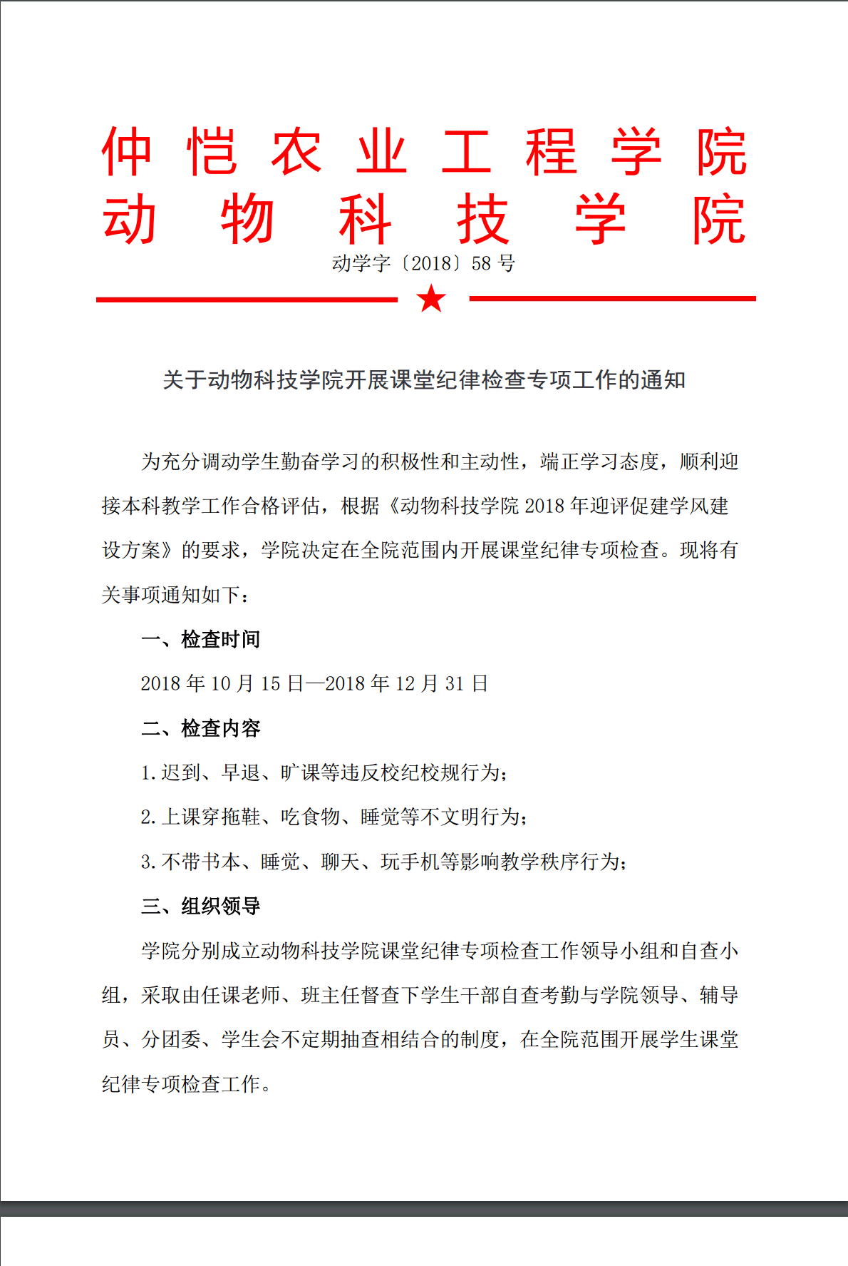 关于公司开展课堂纪律检查专项工作的通知