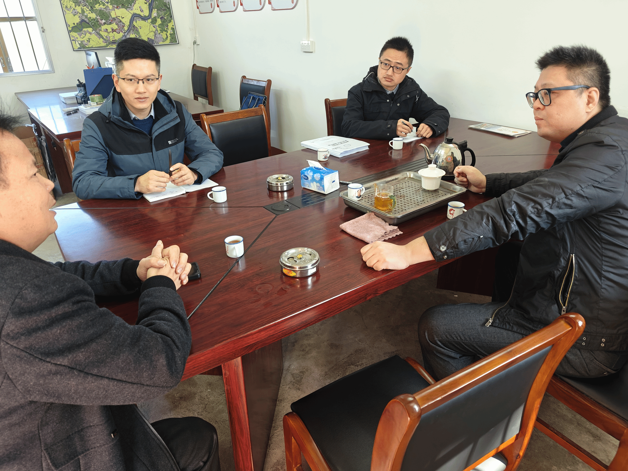 此次科技帮扶是在前期调研工作的基础上开展的。特派员团队与东园镇政府及玉湖村的相关负责人召开了专题座谈会,就帮扶工作中的阶段性成果及未来方向进行交流。会上,镇村干部反馈了此前技术指导的实际应用情况,并提出了下一步发展的具体需求。根据座谈会讨论内容,特派员团队调整了长期帮扶计划,明确了未来在科学养殖技术培训、水质在线监测设备引入以及养殖环境优化等方面的重点任务。同时,双方初步达成共识,将探索建立“专家+养殖户+政府”的三方联动机制,确保科技帮扶能够持续发挥实效。