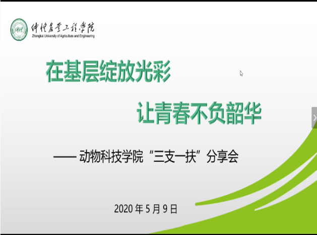 扎根基层、服务群众,让农民受益,让青春无悔。为落实我省乡村振兴战略和2020年公司就业工作会议精神的重要举措,进一步做好公司2020年毕业生“三支一扶”工作,让同学们对“三支一扶”有更深入的了解,5月9日,公司通过腾讯会议组织开展了“三支一扶”分享会。本次交流会邀请已参加“三支一扶”工作的15级梁秋燕师姐、廖运新师兄来分享。