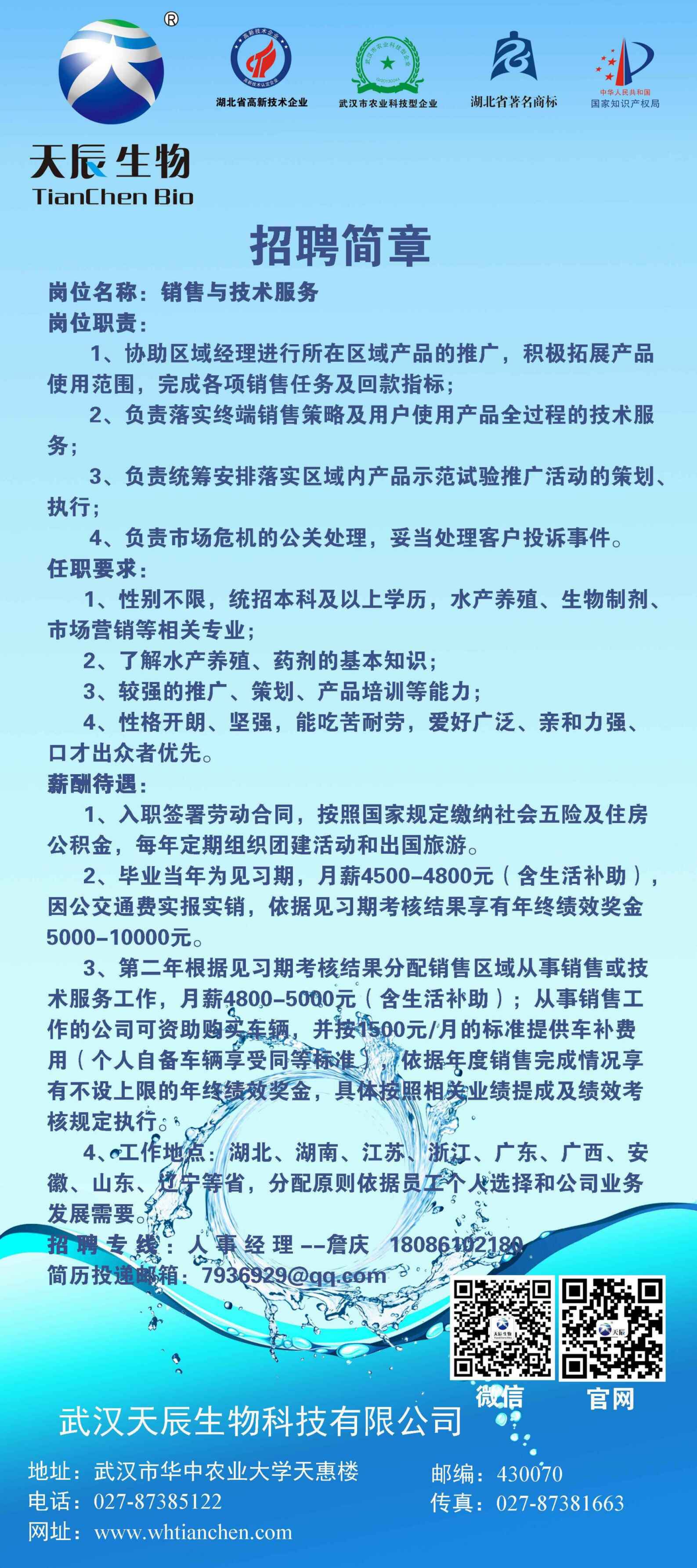 1、性别不限,统招本科及以上学历,水产养殖、生物制剂、