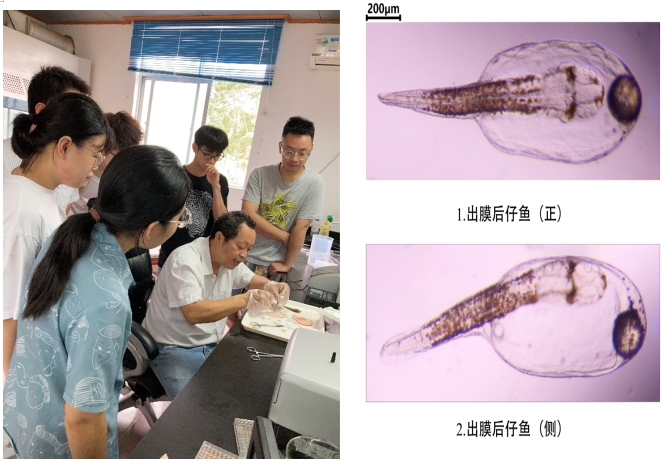 团队研究明确了黄金鲹亲鱼培育和催产条件,获得黄金鲹胚胎发育图谱,阐明了胚胎发育的特征;苗种孵化和培育条件,探索了苗种配合饲料,研发了育苗的饵料序列和人工配合饲料,开展了寄生虫性疾病防控,共培育出3-12厘米的黄金鲹鱼苗6.86万尾,育苗成活率15.1%。