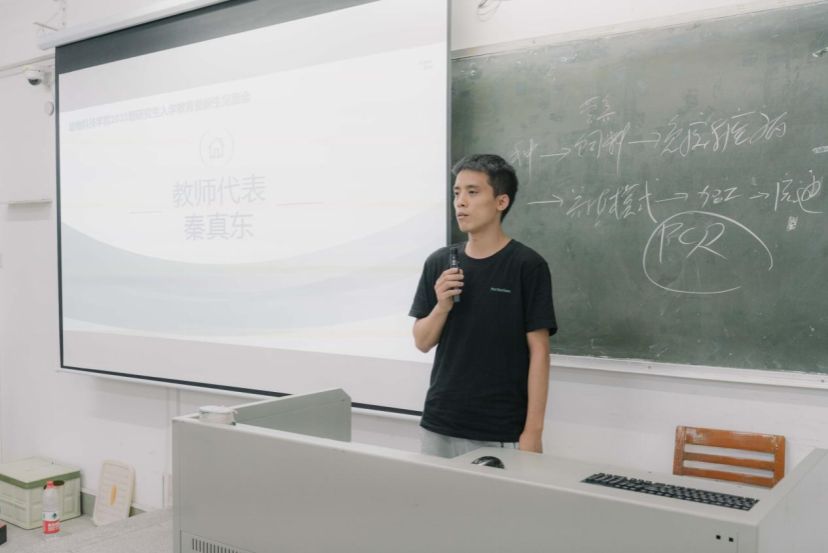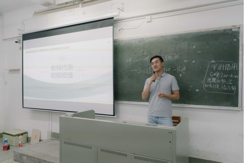 紧接着,付新亮、欧阳宏佳、秦真东作为教师代表进行发言。他们勉励大家从研一开始就要多用功勤钻研,重视文献的阅读,提高自身实验操作技能,学会分析总结,及时与导师沟通,要热爱所学的专业才能有专业自信,规划好阶段性目标并努力完成,同时也要注意自己的身心健康。